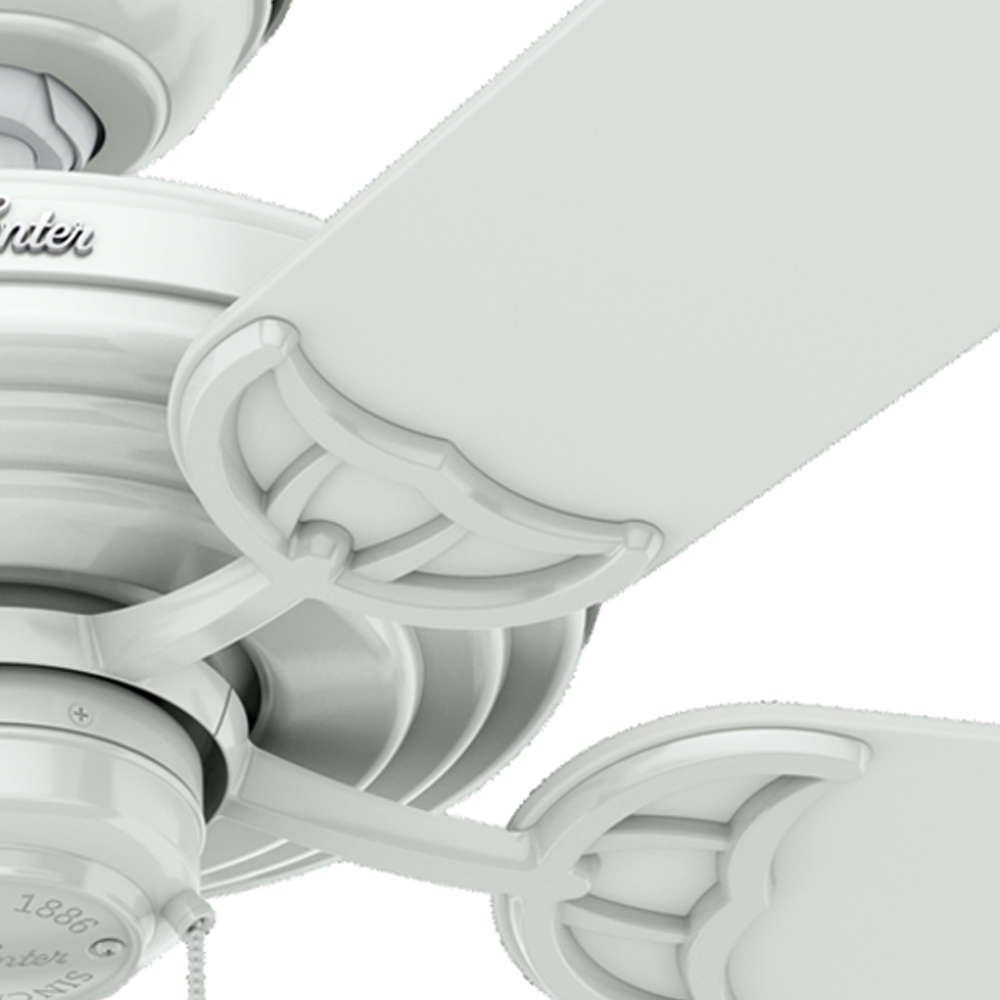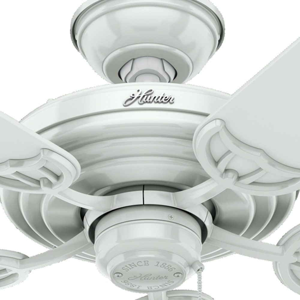 The Sea Air's traditional design and various color options will complement any large area in or outside your home. Made with stainless steel hardware to resist rust, this wet-rated fan is perfect for spaces exposed directly to weather like patios and pergolas. The 52-inch blades of this outdoor ceiling fan are powered by a reversible, three-speed WhisperWind® motor delivering ultra-powerful air movement with a whisper-quiet performance so you get the cooling power you want without the noise. Be sure to check out the wet-rated accessory light kits Hunter® has to offer.