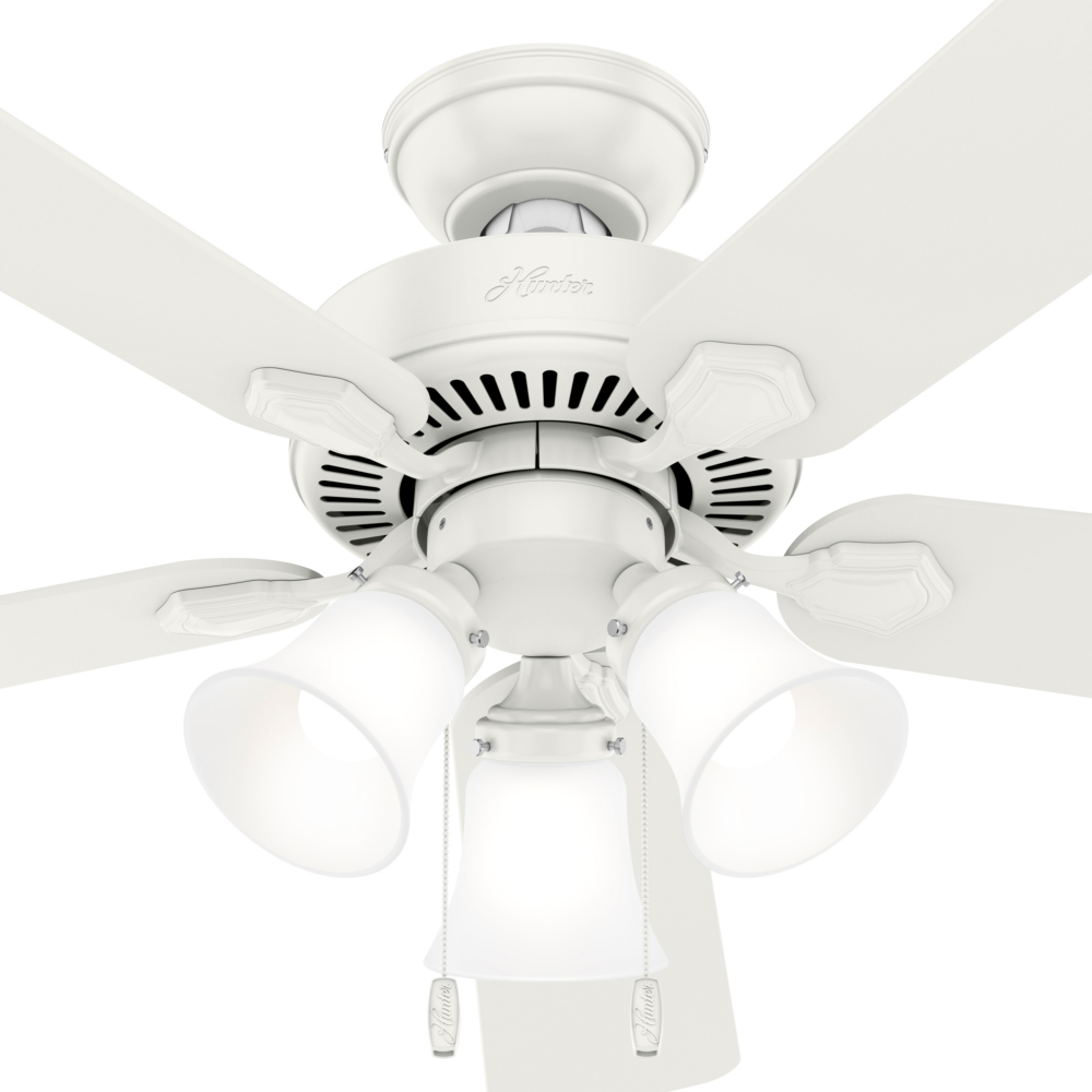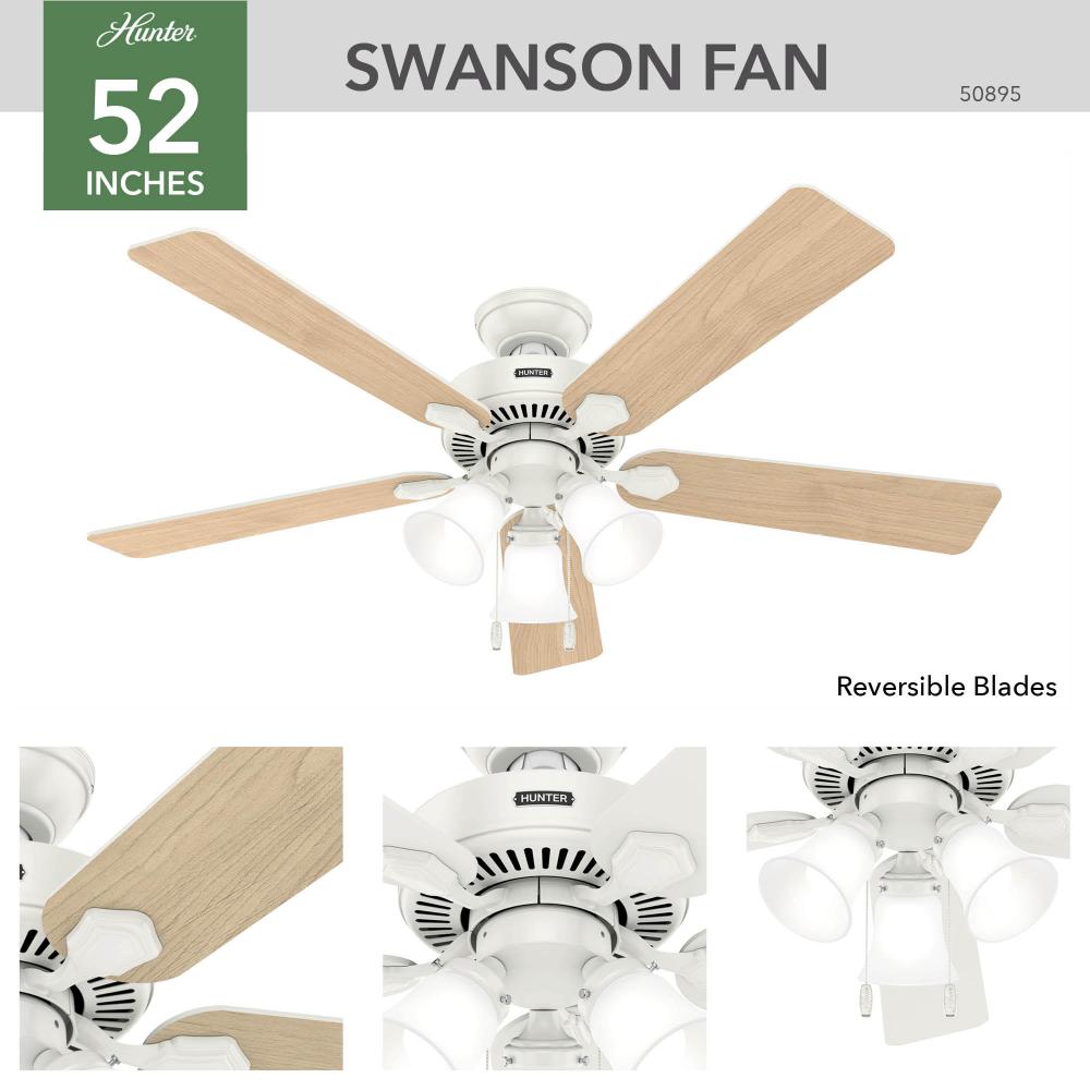 The 52-inch Swanson casual ceiling fan is an ideal fan for large rooms like bedrooms and living rooms. As a part of the Professional Series, the Swanson Collection is available in a variety of sizes, finishes, and light kit combinations. You can add this Hunter ceiling fan to every room in your home knowing it?s wobble free, whisper quiet, and long lasting.