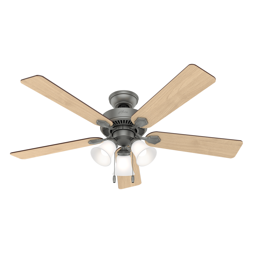 The 52-inch Swanson casual ceiling fan is an ideal fan for large rooms like bedrooms and living rooms. As a part of the Professional Series, the Swanson Collection is available in a variety of sizes, finishes, and light kit combinations. You can add this Hunter ceiling fan to every room in your home knowing it’s wobble free, whisper quiet, and long lasting.
