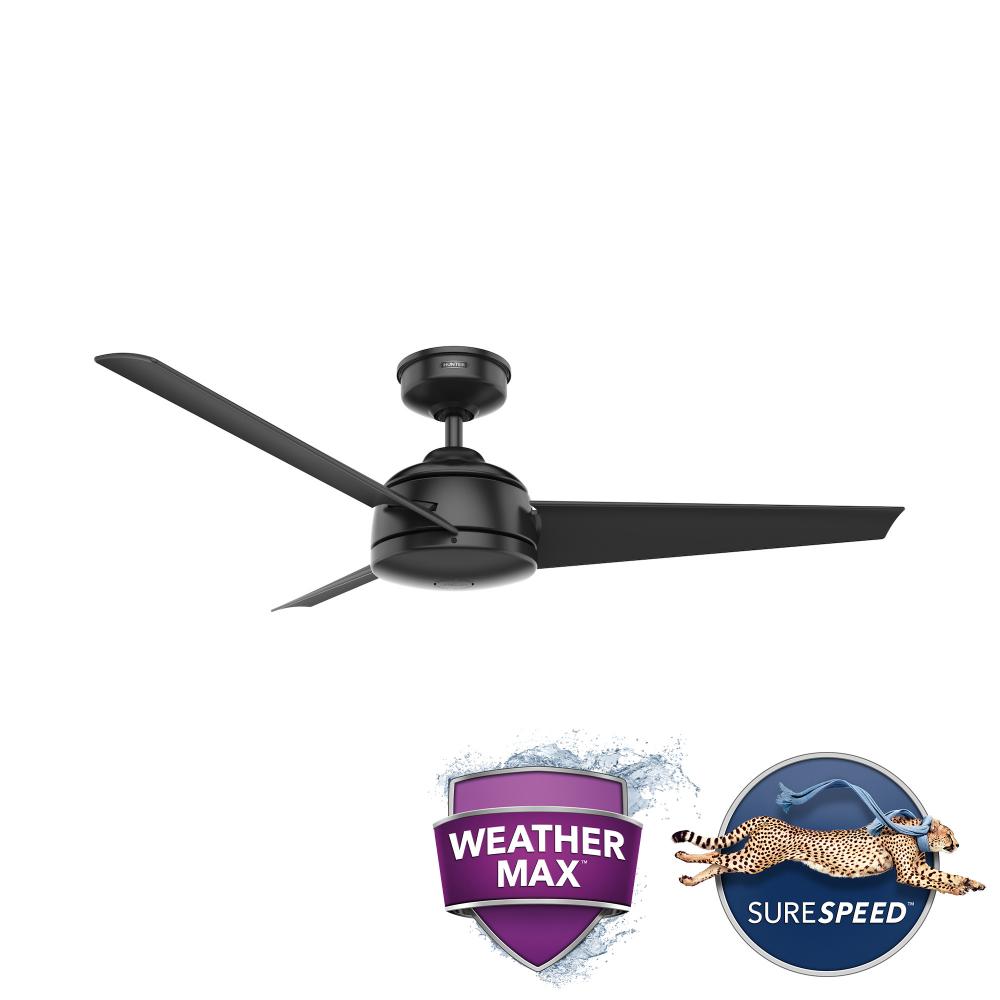 As a part of Hunter’s WeatherMax® Collection, the Trimaran outdoor ceiling is Engineered for the Elements®. It's wet-rated as well as corrosion and salt-air resistant making it great for outdoor spaces like pergolas and patios. Easily control this ceiling fan without light with the included wall control. Available in classic finishes, this modern ceiling fan fits seamlessly in large, casual spaces.