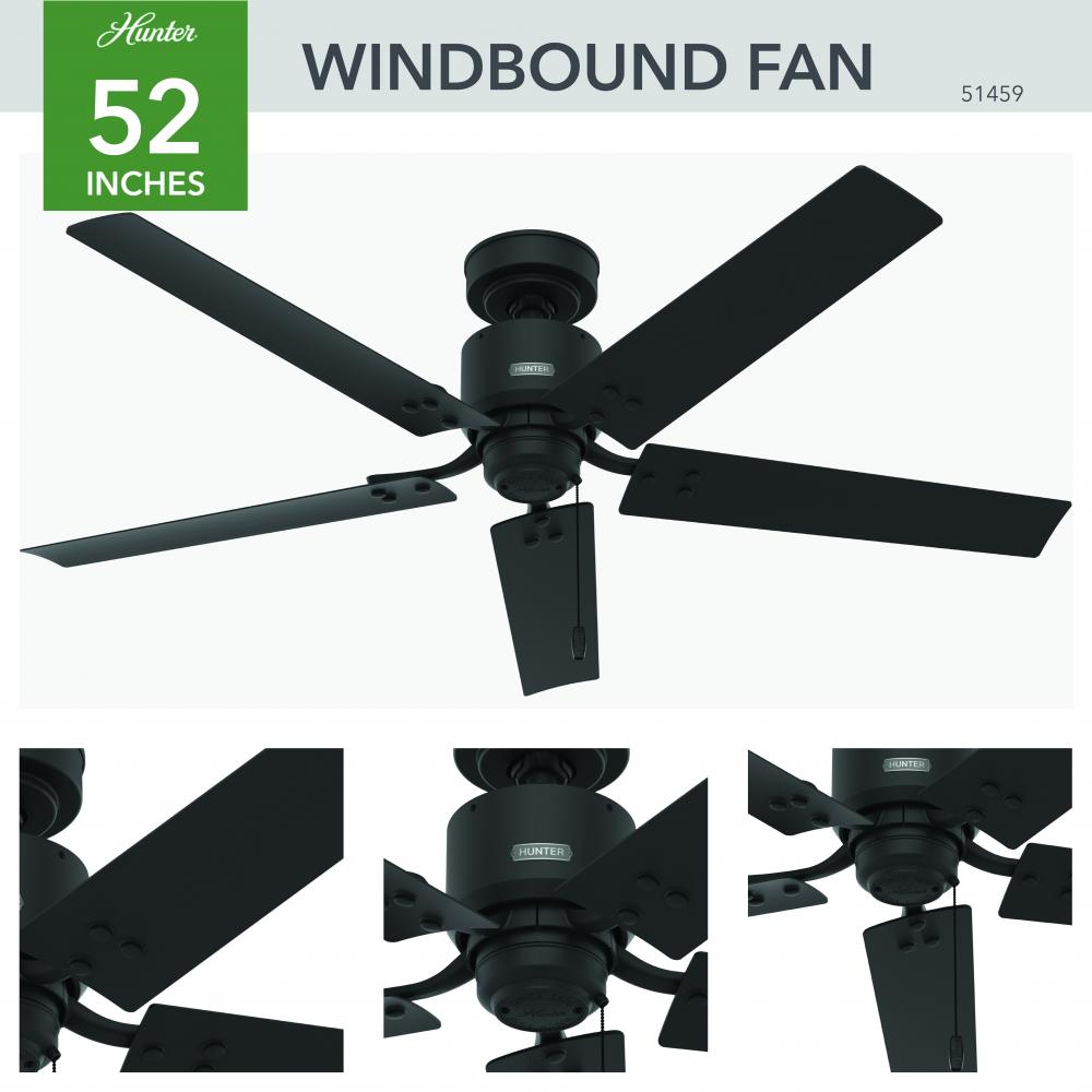 Complement the exposed brick and distressed wood finishes in your space with this modern industrial fan design. Evoking the turn-of-the-century era, the Windbound outdoor ceiling fan?s exposed hardware adds an edgy style. Built with our SureSpeed? Guarantee and WhisperWind? motor, the Windbound keeps your covered outdoor spaces ? or indoor ones ? cool and comfortable while maintaining wobble-free performance.