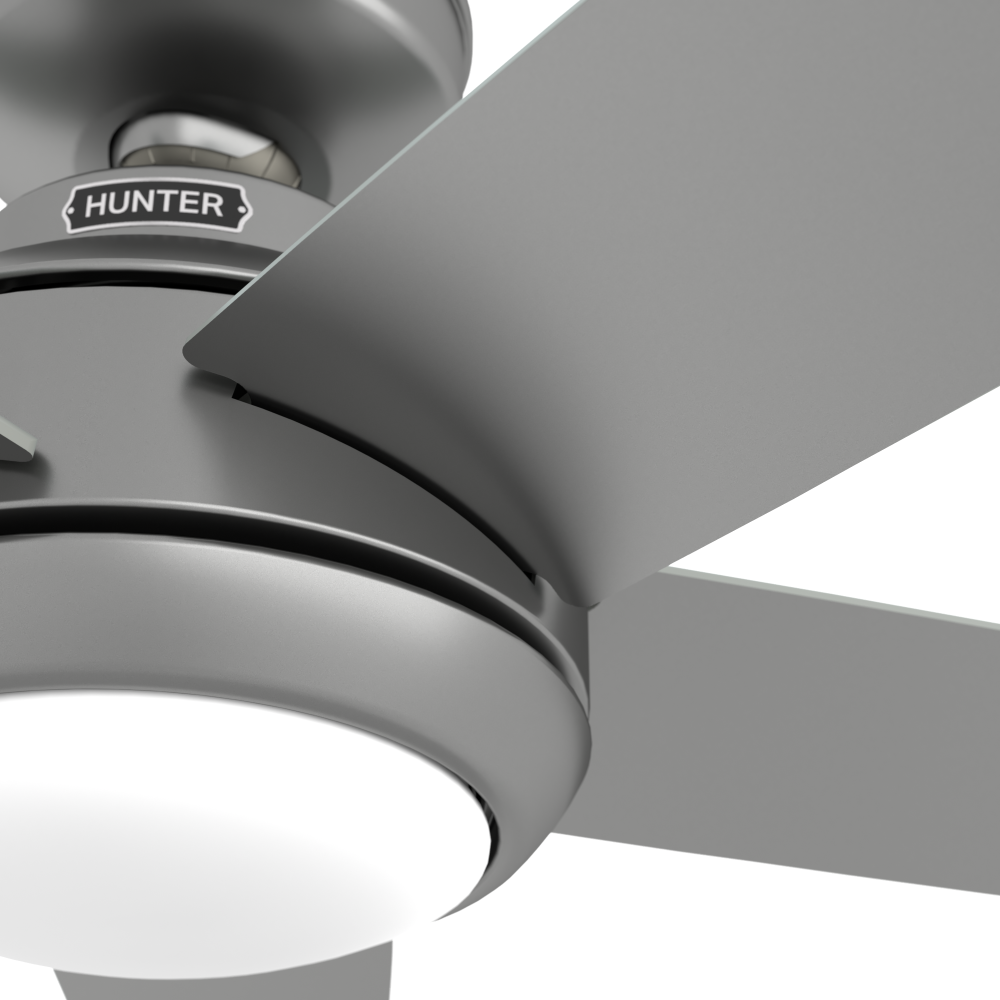 Introduce a modern look to your home’s largest living spaces with the Zayden ceiling fan and LED light kit. Edgy and chic, this fan is engineered with Hunter’s SureSpeed® Guarantee to deliver airflow you can feel while maintaining a quiet, wobble-free performance. Kick your game room up a notch or give your dinner guests something to talk about with the Zayden ceiling fan.