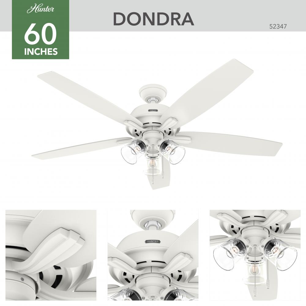The Dondra ceiling fan is a great addition to a formal or transition space. Dress up your great room or bonus room and show off your sense of style. The reversible, 3-speed WhisperWind® motor delivers ultra-powerful air movement with whisper-quiet performance so you get the cooling power you want without the noise you don't™. Mix and match with lighting from our many transitional design collections, we have everything you need to finish your decor with style.