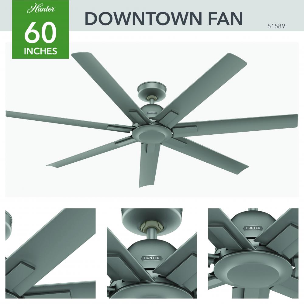 A must for your patio. The 60-inch Downtown ceiling fan keeps the air moving in both your indoor and outdoor spaces. This modern and industrial fan brings a clean design to large spaces. Featuring our exclusive Surespeed® technology, the Downtown Ceiling fan keeps your porches and pergolas stylish and cool.