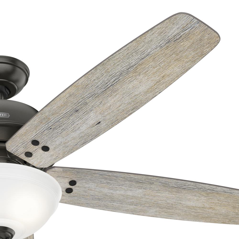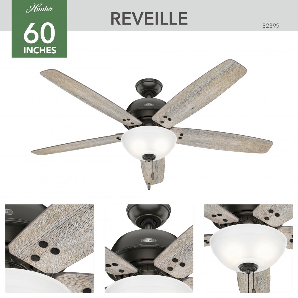 Featuring high-end finishes and a hint of the old west, the Reveille rustic ceiling fan is the perfect accent for your western home decor style. This fan offers an option to install with or without the light kit which includes dimmable, energy-efficient LED bulbs that provide the perfect amount of light through cased white glass. Ideal for your large, open-concept living room, the Reveille's 60-inch blades power a reversible, three-speed WhisperWind® motor to deliver ultra-powerful air movement with a whisper-quiet performance so you get the cooling power you want without the noise.