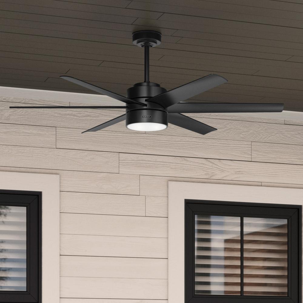 The Solaria outdoor ceiling fan features our exclusive SureSpeed® Guarantee, providing unrivaled high-speed cooling. As a Hunter ENERGY STAR® certified ceiling fan, the Solaria is 64% more efficient on average than conventional fans* while helping you save you money on cooling costs. This large ceiling fan is damp-rated for use in covered rooms exposed to moisture like porches, patios, garages, and bathrooms.