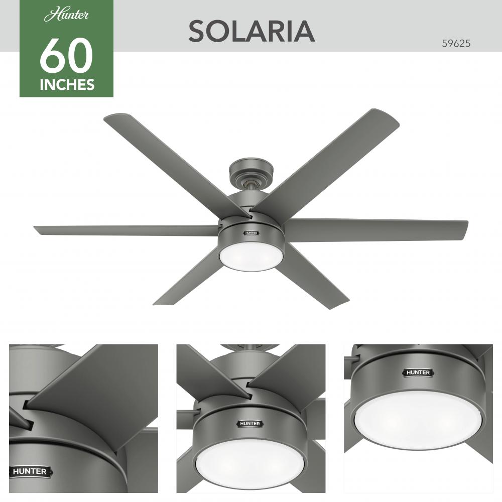 The Solaria outdoor ceiling fan features our exclusive SureSpeed® Guarantee, providing unrivaled high-speed cooling. As a Hunter ENERGY STAR® certified ceiling fan, the Solaria is 64% more efficient on average than conventional fans* while helping you save you money on cooling costs. This large ceiling fan is damp-rated for use in covered rooms exposed to moisture like porches, patios, garages, and bathrooms.