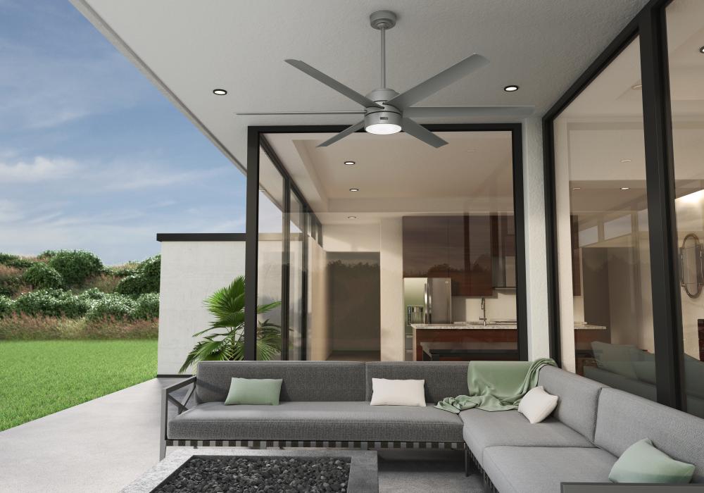 The Solaria outdoor ceiling fan features our exclusive SureSpeed® Guarantee, providing unrivaled high-speed cooling. The pre-installed control receiver means simple wiring, and the included wall control is pre-paired and ready to use as soon as the fan is installed. As a Hunter ENERGY STAR® certified ceiling fan, the Solaria is 64% more efficient on average than conventional fans* while helping you save you money on cooling costs. This large ceiling fan is damp-rated for use in covered rooms exposed to moisture like porches, patios, garages, and bathrooms.