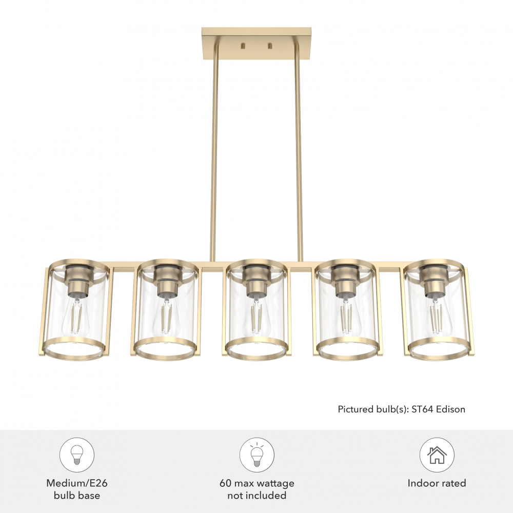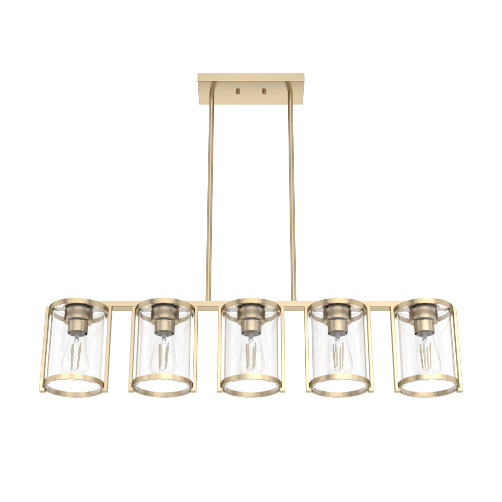 Evoking subtle art deco detailing, the Astwood linear chandelier offers an effortless and modern way to update the space in your room that needs a fresh shine. This caged modern chandelier touts a fuss-free design that has stunning simplicity, making it an easy way to elevate your room’s design. mix and match with other fixtures from this collection or from our ceiling fan designs.