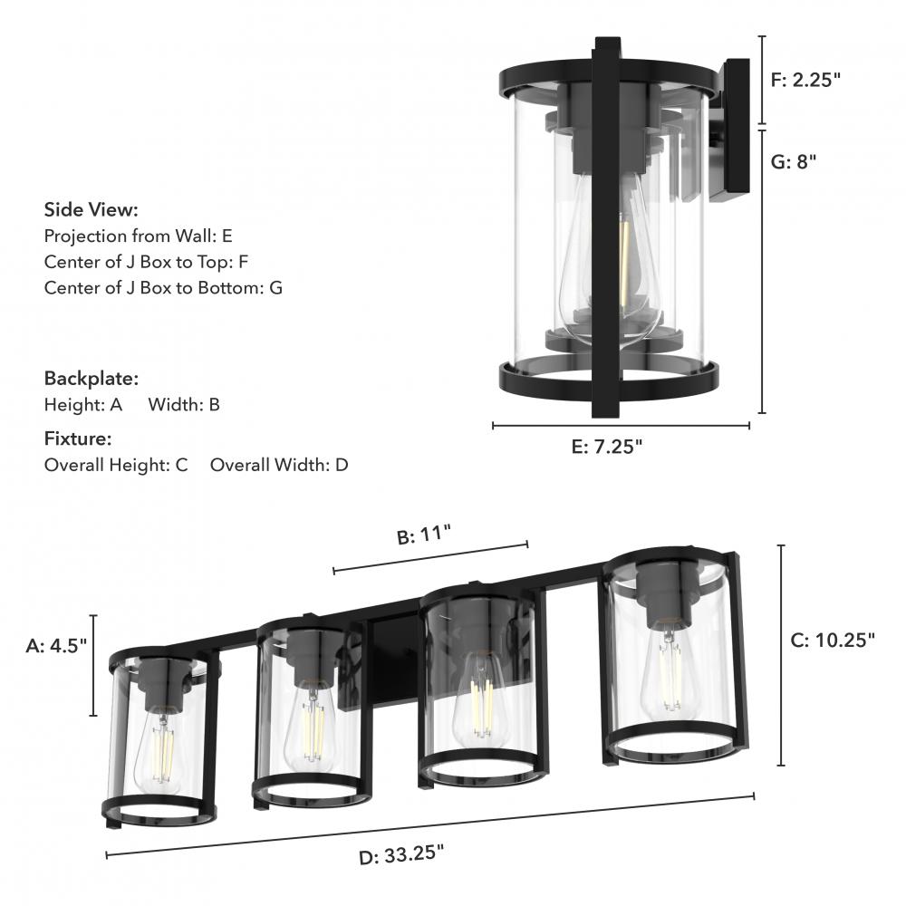 Sconce/Vanity Center of J Box to Bottom:
