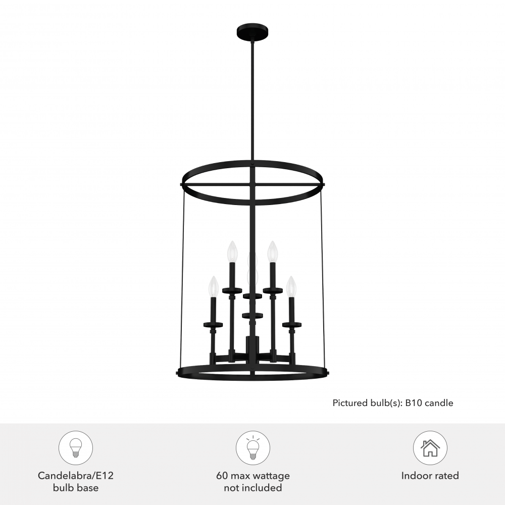 Requires 6 E12 bulbs. Bulbs not included.