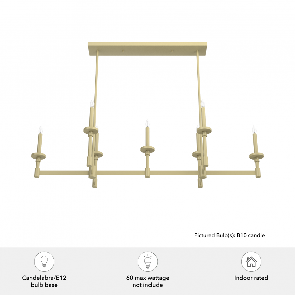 Minimal yet dramatic and full of flair. The Briargrove linear chandelier features simple lines but the layered lights create a striking composition. It’s an updated and modern take on the spindle chandelier. With ample opportunity for light, this linear chandelier makes a statement in any space. mix and match with other fixtures from this collection or from our ceiling fan designs.