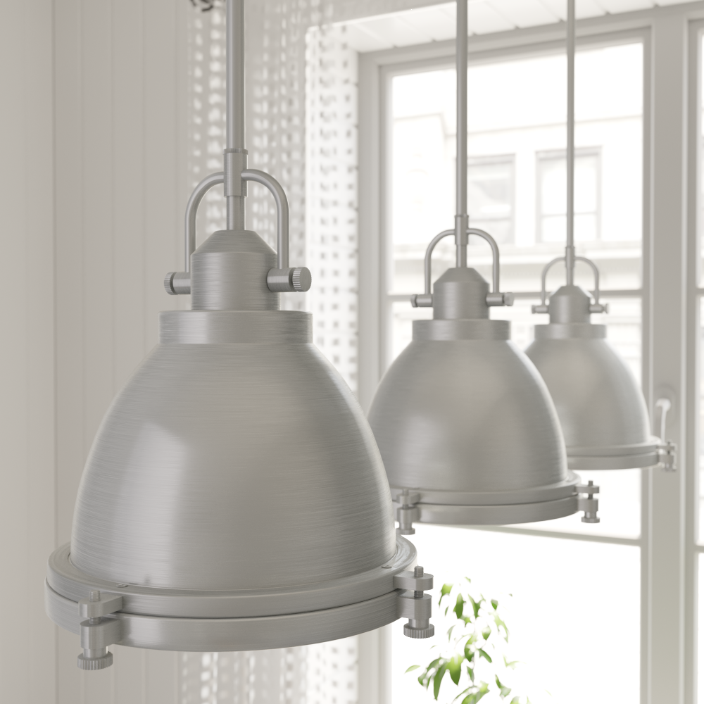 The Bridgemoor pendant light’s authentic design is what your modern industrial and farmhouse style spaces demand. The rustic hardware detailing gives this modern industrial pendant light a warm aesthetic. The dome shape is accented by clear, holophane glass that creates a stunning effect and ample light output.