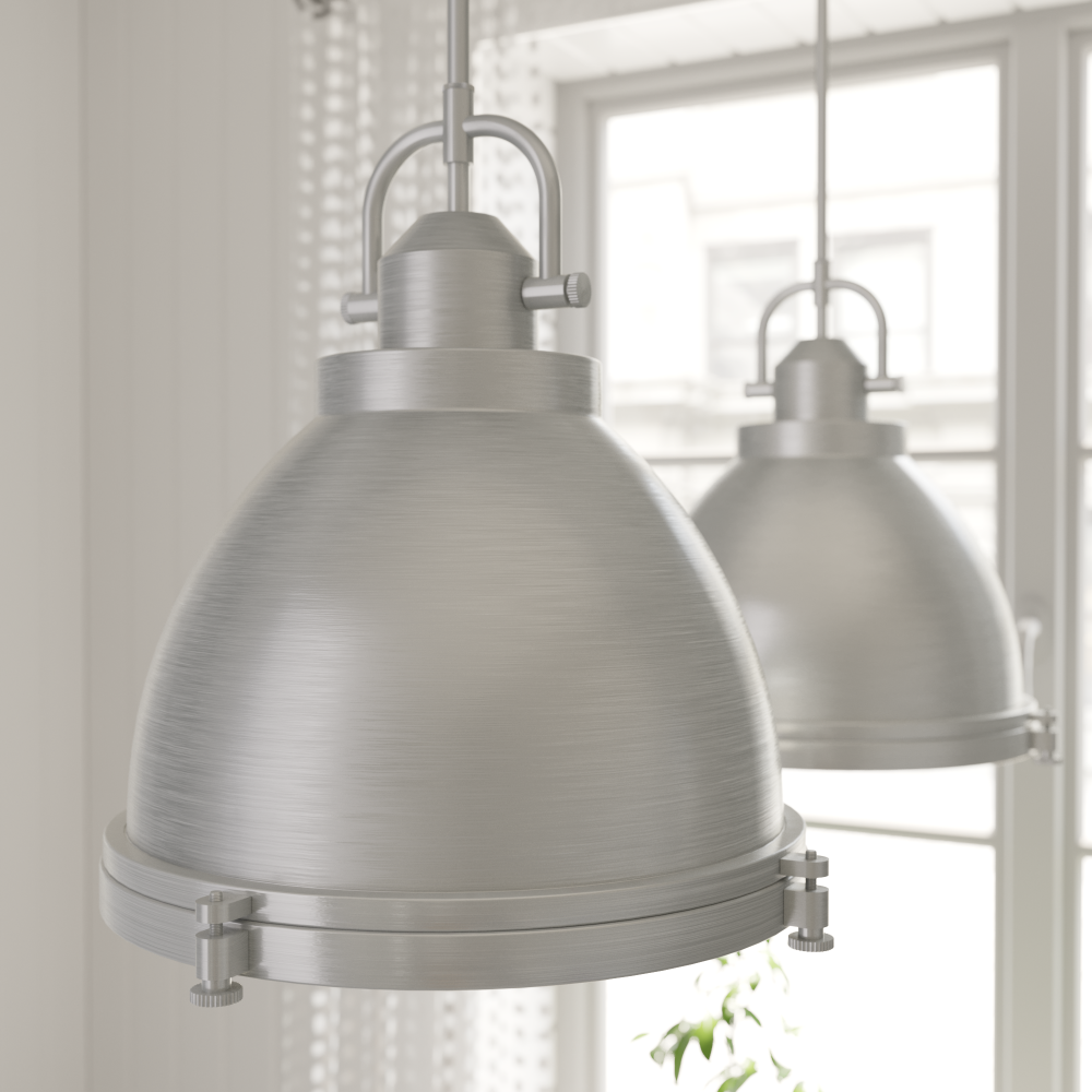 The Bridgemoor is a modern interpretation of classic industrial design. The rustic hardware detailing gives this modern industrial pendant light an authentic and warm aesthetic. It’s perfect for farmhouse style and other casual spaces. Through the clear holophane glass, this 2-light pendant provides plenty of opportunity for light output.