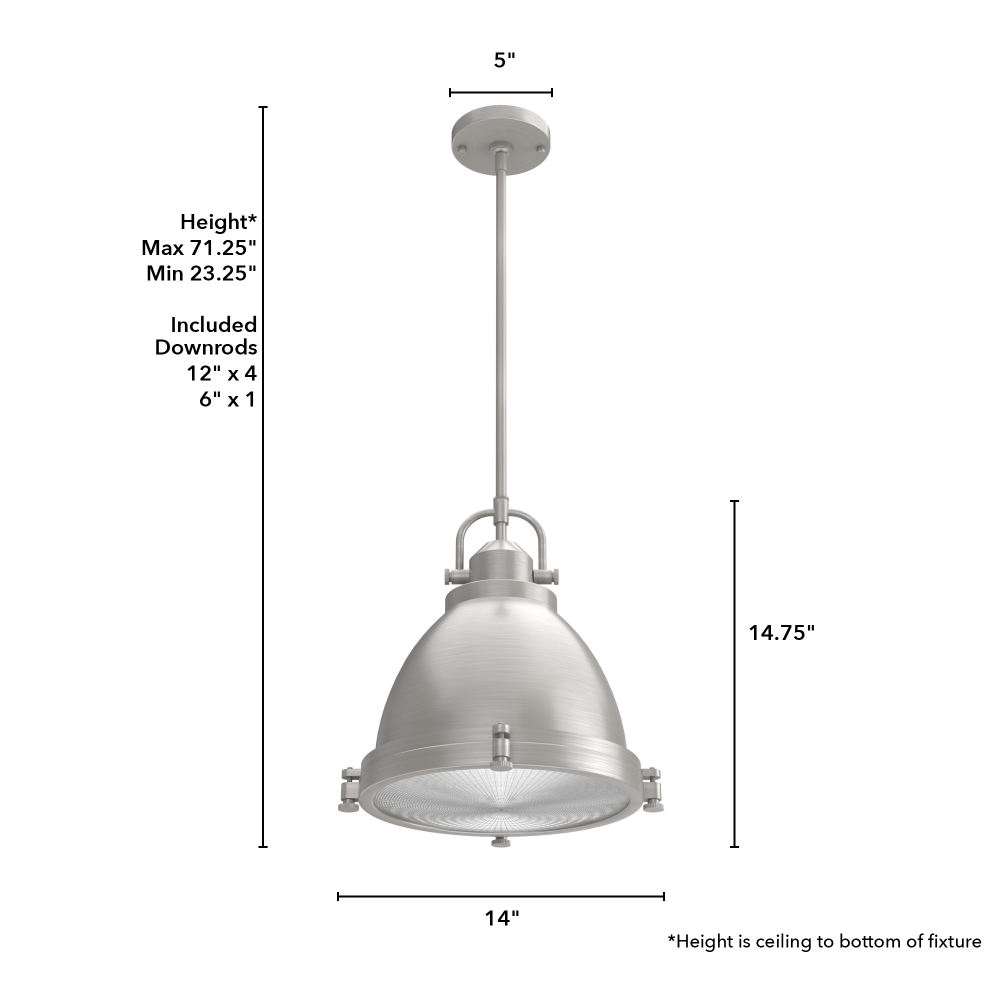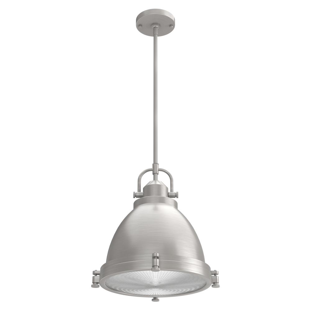 The Bridgemoor is a modern interpretation of classic industrial design. The rustic hardware detailing gives this modern industrial pendant light an authentic and warm aesthetic. It’s perfect for farmhouse style and other casual spaces. Through the clear holophane glass, this pendant provides plenty of opportunity for light output. Mix and match with other fixtures from this collection or from our ceiling fan designs.