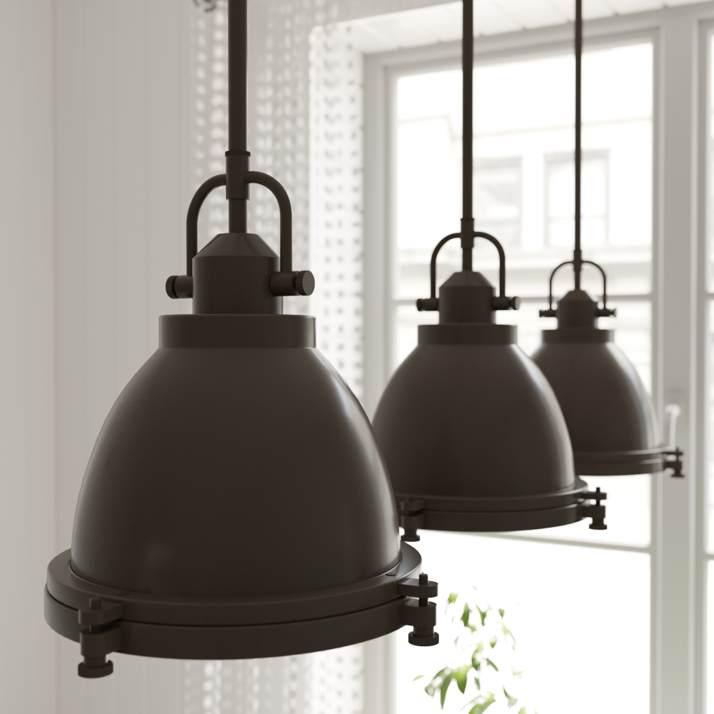The Bridgemoor pendant light’s authentic design is what your modern industrial and farmhouse style spaces demand. The rustic hardware detailing gives this modern industrial pendant light a warm aesthetic. The dome shape is accented by clear, holophane glass that creates a stunning effect and ample light output.