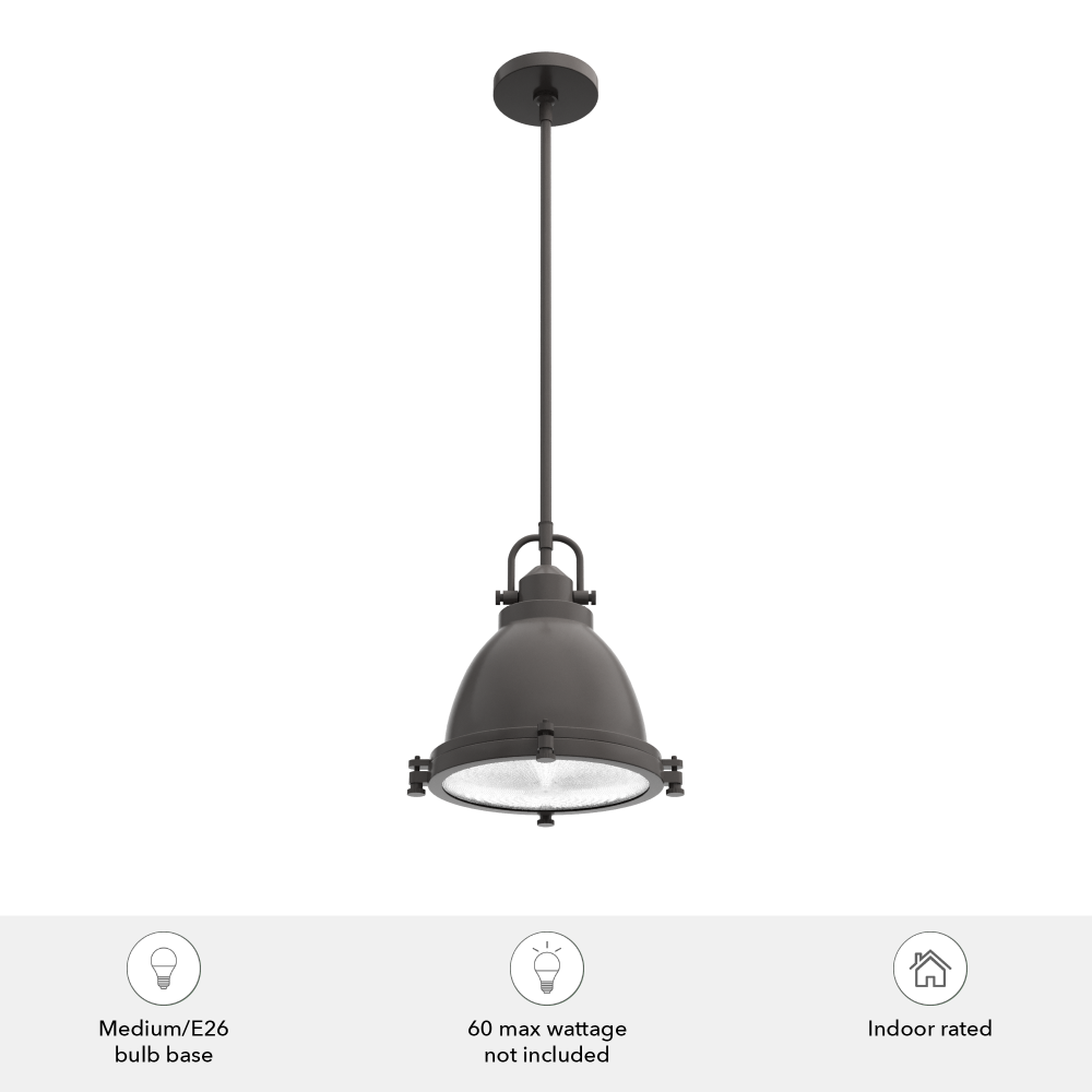 The Bridgemoor pendant light’s authentic design is what your modern industrial and farmhouse-style spaces demand. The rustic hardware detailing gives this modern industrial pendant light a warm aesthetic. The dome shape is accented by clear, holophane glass that creates a stunning effect and ample light output. Mix and match with other fixtures from this collection or from our ceiling fan designs.