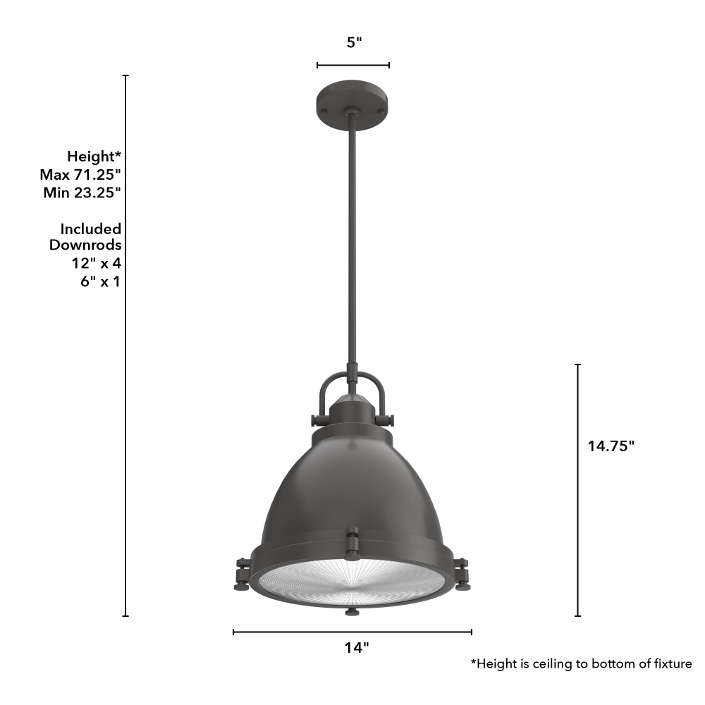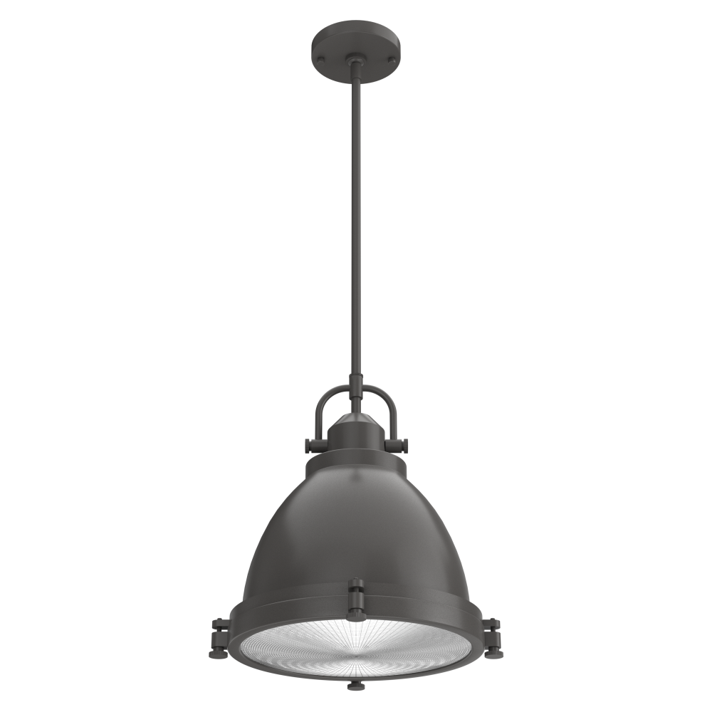 The Bridgemoor is a modern interpretation of classic industrial design. The rustic hardware detailing gives this modern industrial pendant light an authentic and warm aesthetic. It’s perfect for farmhouse style and other casual spaces. Through the clear holophane glass, this pendant provides plenty of opportunity for light output. Mix and match with other fixtures from this collection or from our ceiling fan designs.