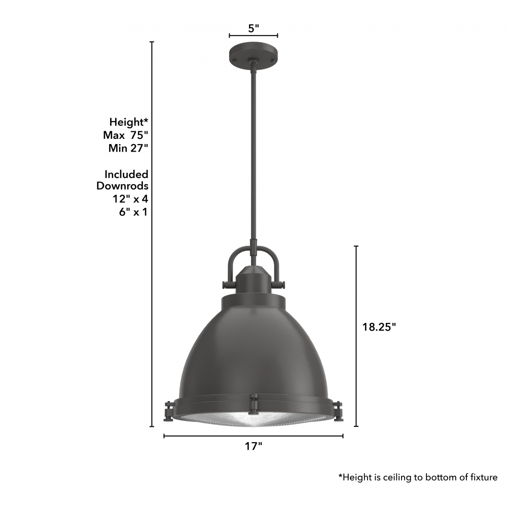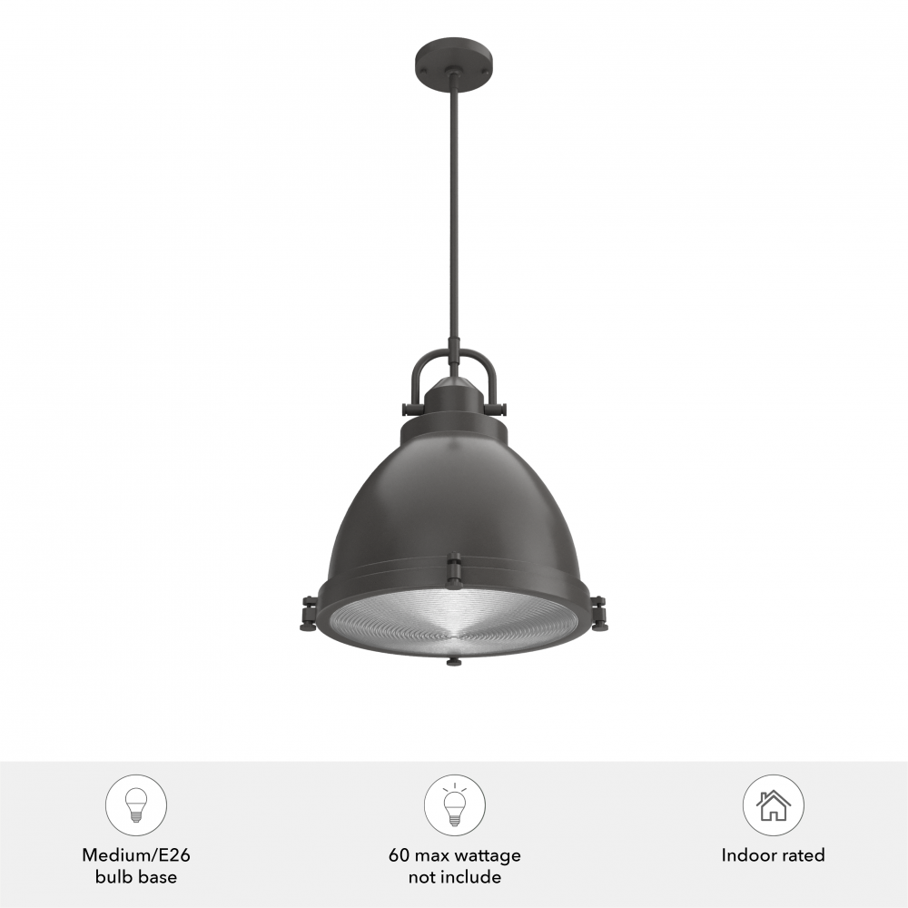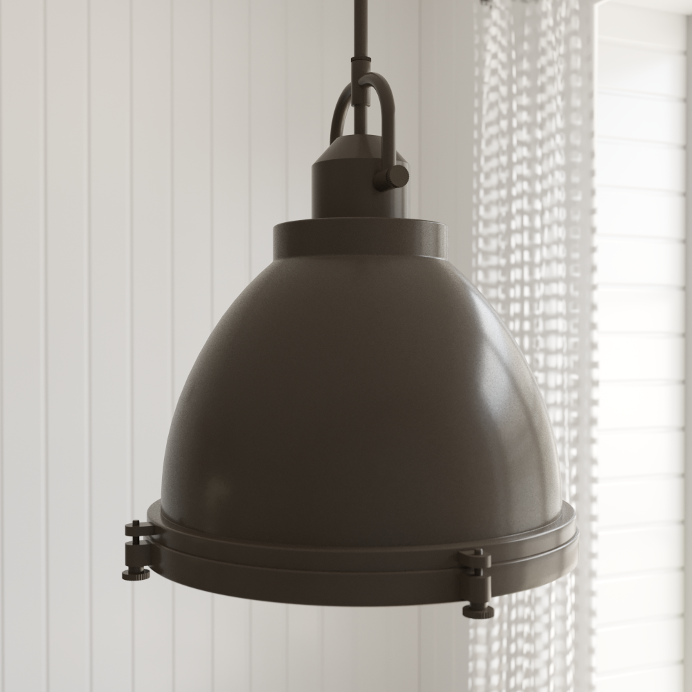 The Bridgemoor oversized pendant light makes an impact. The rustic hardware detailing gives this modern industrial pendant light an authentic and warm aesthetic, perfect for farmhouse style and other casual spaces. With a robust 17-inch diameter and 3 light sockets, this extra-large pendant’s style and light output are industrial sized.