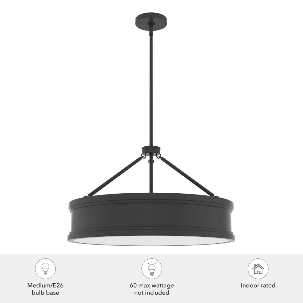 The Capshaw pendant light is a captivating fixture from our Hunter Lighting collection. Outfitted with multiple lights in a sleek drum setting, the Capshaw beautifully balances modern style with a classic sensibility, creating a new traditional accent piece that easily complements most design schemes. Uplift your living room, dining room, or entryway with the Capshaw pendant. Mix and match with other fixtures from this collection or from our ceiling fan designs.