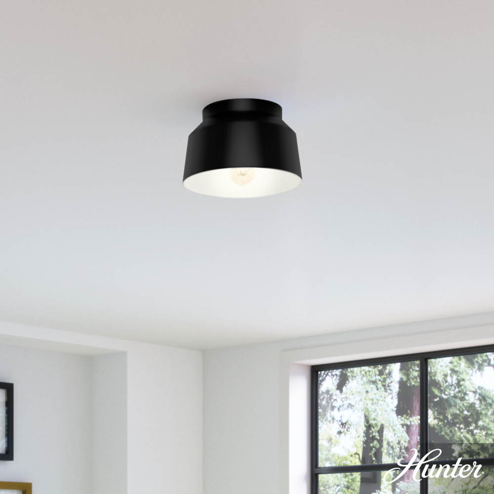 Just the right touch of vintage to update your space. Inspired by mid-century modern design and current influences, the Cranbrook mid-century modern flush mount light touts a unique hooded light available in a variety of neutral finishes and pops of color for any room. For those who like to coordinate, this flush mount light matches our Cranbrook ceiling fan collection.