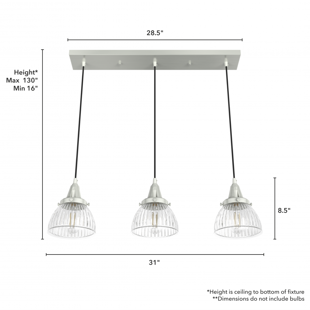 Requires 3 E26 bulbs. Bulbs not included.