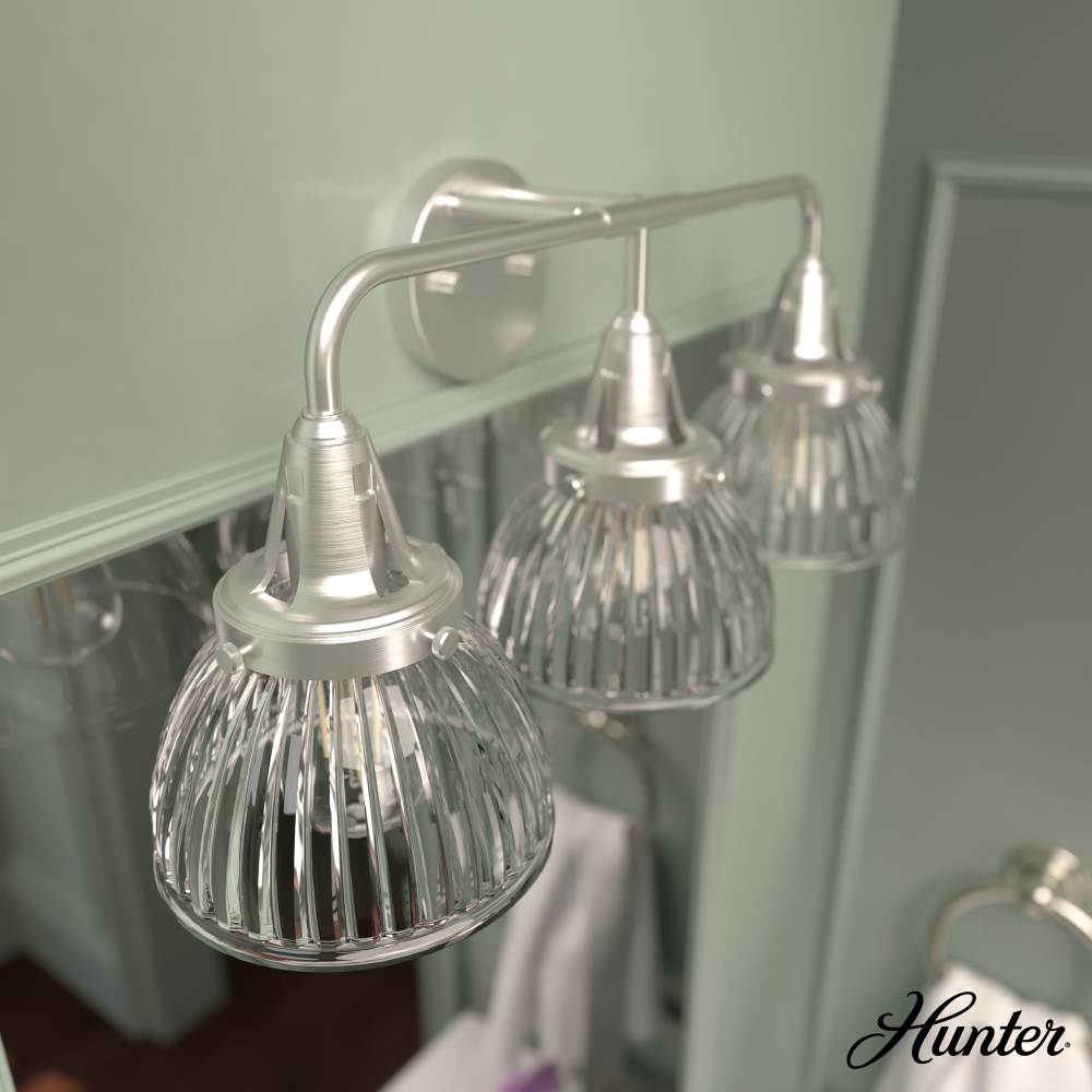 An antique look with industrial details. The Cypress Grove vanity is an elegant twist on modern industrial lighting. This modern vanity light boasts fluted glass detailing and an indoor damp rating, making it a wonderful addition to spaces exposed to moisture, like bathrooms. Carry this industrial theme throughout your space by pairing this vanity light with other Cypress Grove fixtures.