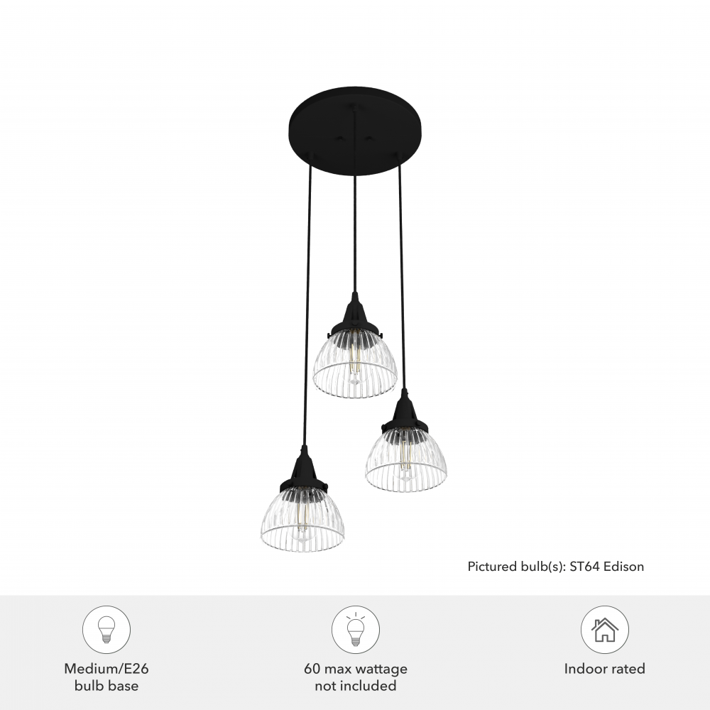 Requires 3 E26 bulbs. Bulbs not included.