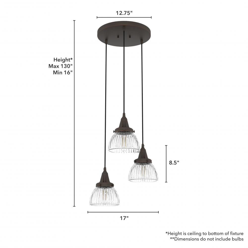 Add a one-of-a-kind layered look to your space. The Cypress Grove round cluster light provides 3 lights and a stylish look in one fixture. Create a wow factor in your space as the light refracts from the beautiful, fluted glass. A part of our Cypress Grove collection, this cluster light can stand on its own and pair with other fixtures from the collection.
