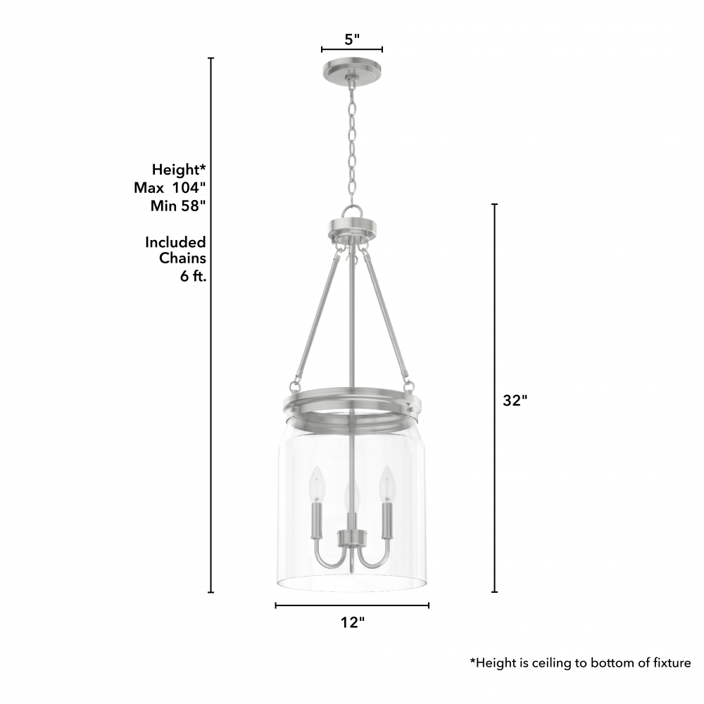 CUSTOMIZABLE HANGING OPTIONS: With the minimum required chain, the hanging length is 58 inches. When using all of the included chain, the maximum hanging length is 104 inches.