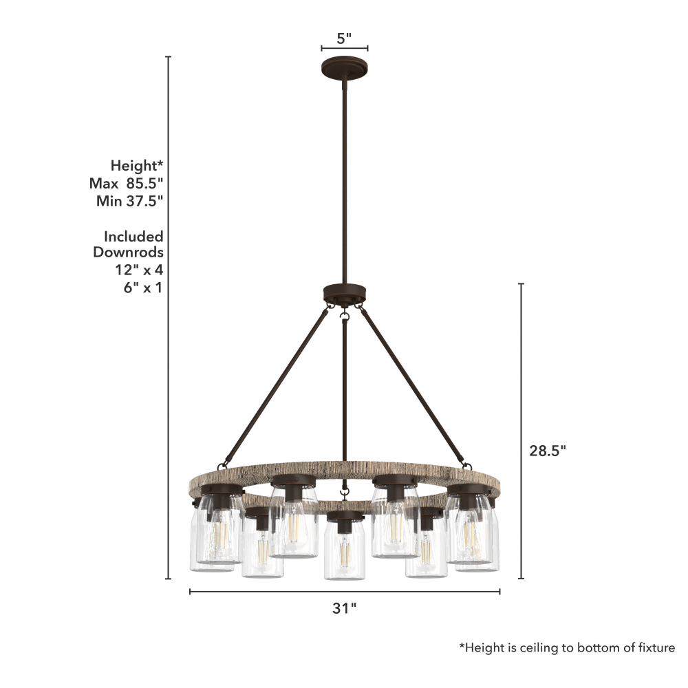 Requires 9 E26 bulbs. Bulbs not included.
