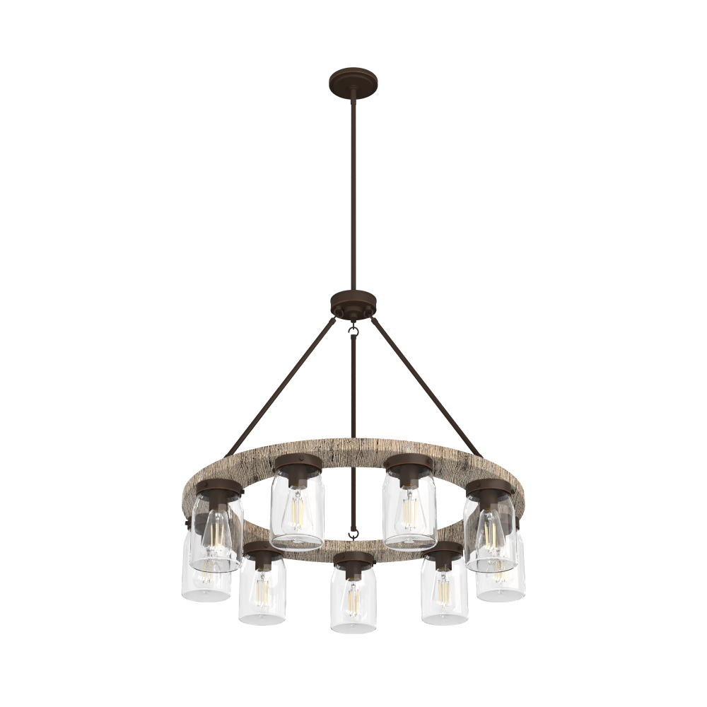 Illuminate your space with this charming chandelier. Reminiscent of a rustic wagon wheel, the Devon Park round chandelier brings farmhouse spaces to life. This round fixture creates a dimensional look with its distressed finishes and clean, ironwork detailing. Complement the chandelier by layering it with other fixtures from the Devon Park ceiling fan and lighting collections to create a cohesive look in your space.