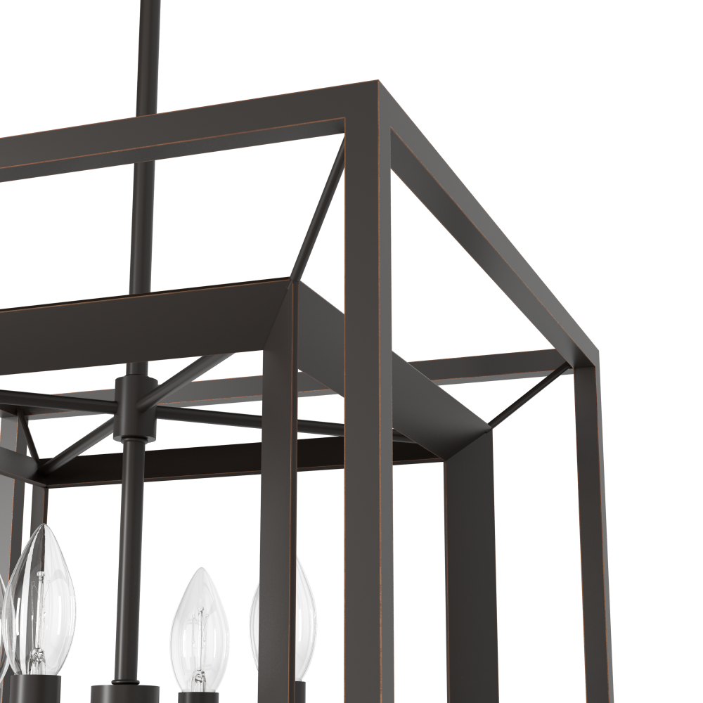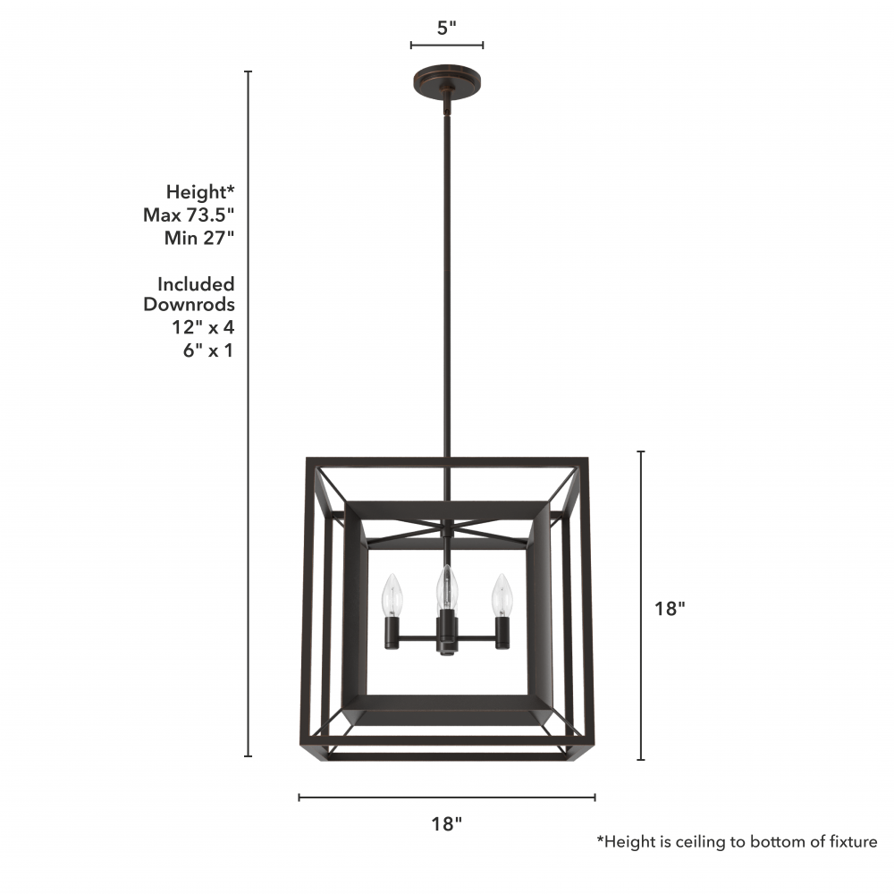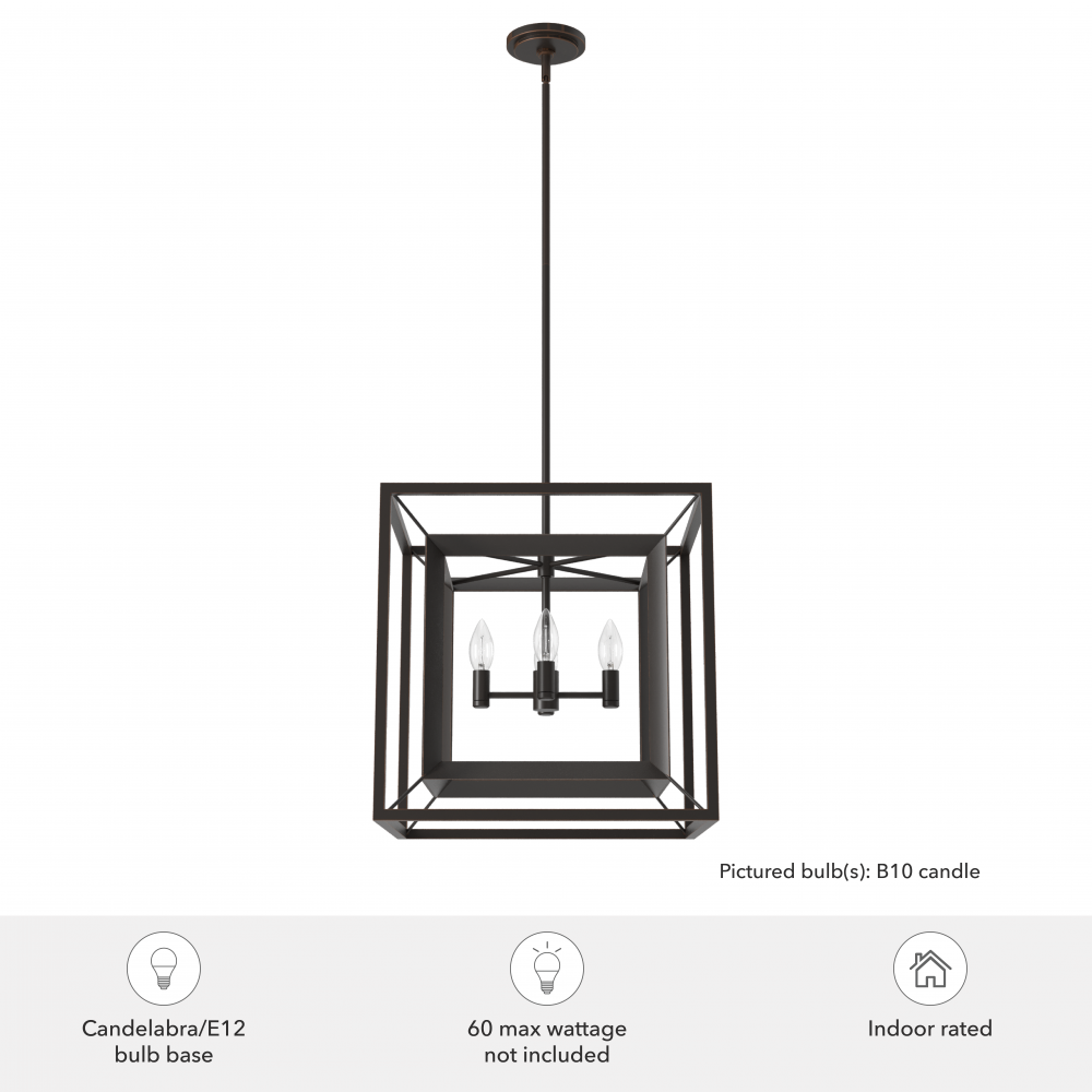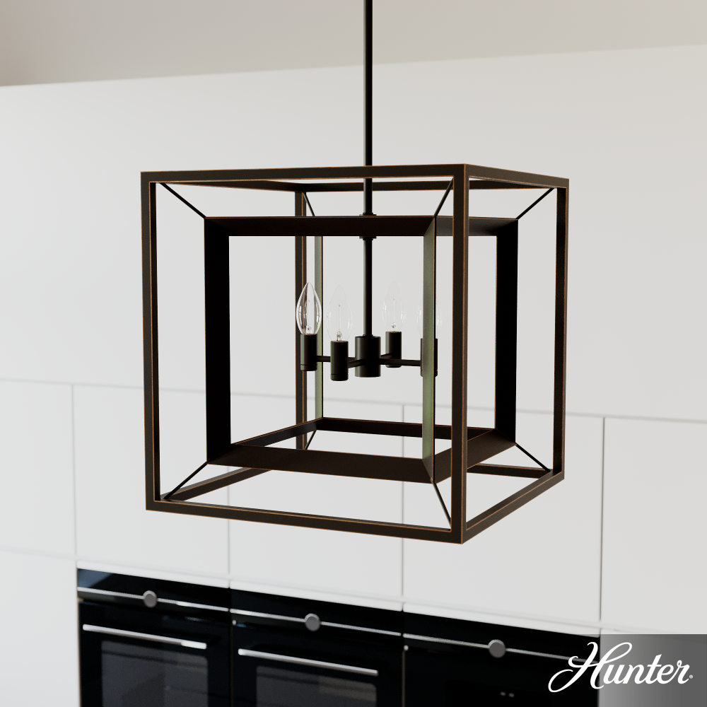 Brighten up your space with a warm glow with the Doherty lantern pendant. A mixture of modern elegance and casual comfort, The Doherty combines bold design, clean lines, and warm illumination of candle-like bulbs that appear to float. This elegant pendant will match seamlessly with your decor. Mix and match with other fixtures from this collection or from our ceiling fan designs.