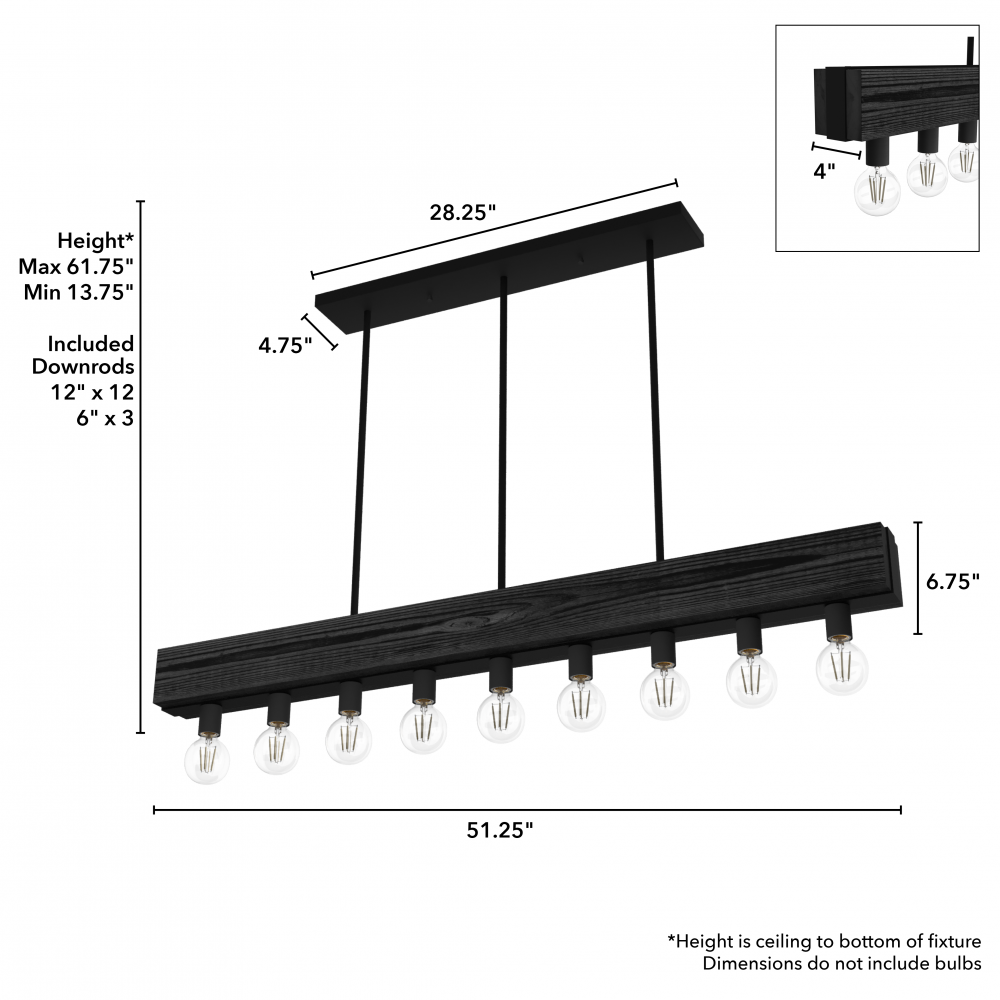 Stunning details and a grand scale. Evoking authenticity and artisanship, the Donelson 9-light linear chandelier features real wood finishes accented by metal detailing. It provides ample lighting and elevates the look of your space, particularly in modern industrial style rooms.