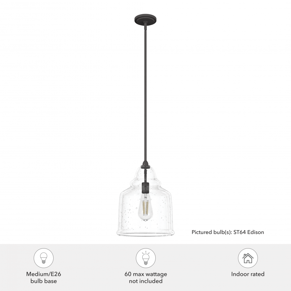 The Dunshire pendant is a picture of understated beauty that will still knock your socks off. The clean lines of the bell-shaped clear seeded glass makes this fixture a delight in your foyer dining room or kitchen. Entertain your guests in the warm glow of the Dunshire. Mix and match with other fixtures from this collection or from our ceiling fan designs.