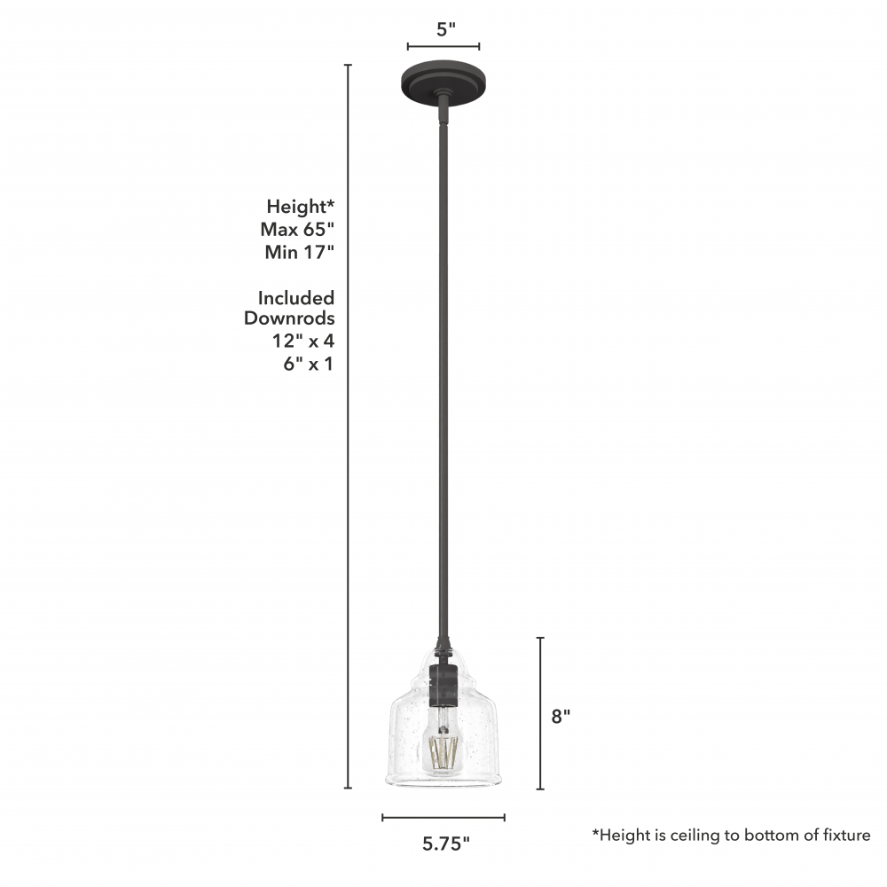 CUSTOMIZABLE HANGING OPTIONS: With the minimum required downrod, the hanging length is 17 inches. When using all of the included downrod, the maximum hanging length is 65 inches.