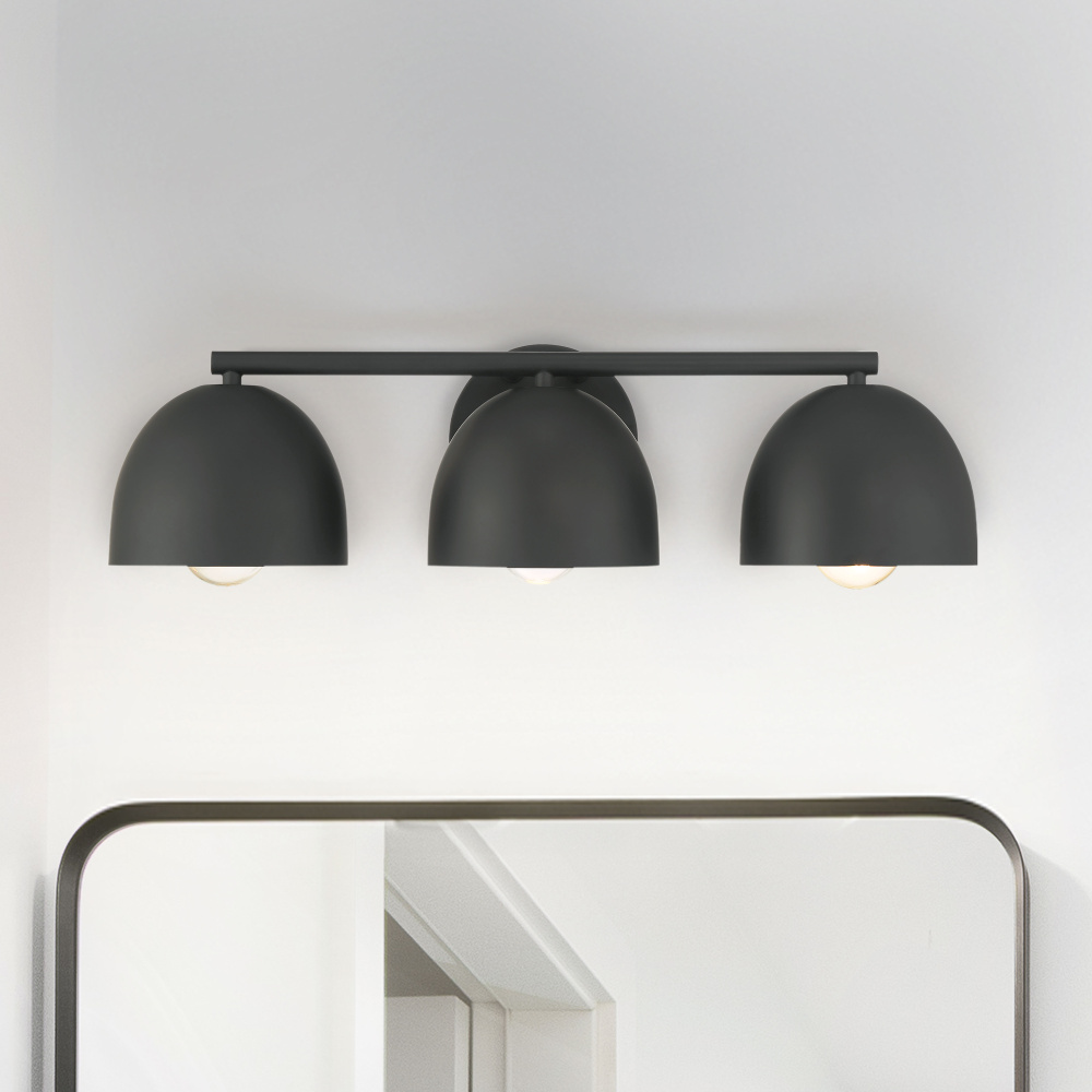 Enrich your bathroom with the Erling 3 Light Medium Vanity, a perfect match for the Erling fan. This modern fixture features simple metal dome shades that bring a clean, streamlined look to any space. Designed with an organic modern style, the Erling vanity light blends natural elements with contemporary design, creating a warm and welcoming ambiance. Ideal for bathrooms and dressing areas, its versatile style and soft, flattering light make everyday routines feel effortlessly chic and refreshingly modern.