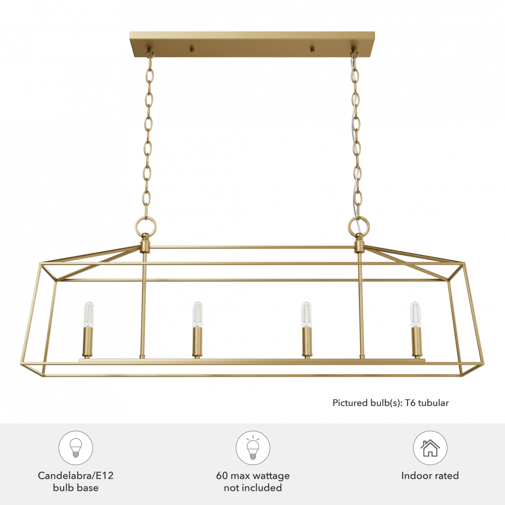 Infused with a touch of "vintage greenhouse" style, the Fair Oaks Linear Chandelier radiates charm and elegance. This delicate, classic piece, designed in partnership with Jasmine Roth, combines sharp geometric lines and a soft, welcoming glow, making it a standout feature in any kitchen or dining room. Elevate any space or style with the Fair Oaks Chandelier and bring out its beauty wherever you put it! Harmoniously mix and match with other fixtures from the Jasmine Roth Collection or our sophisticated ceiling fan designs to achieve a cohesive and captivating aesthetic.