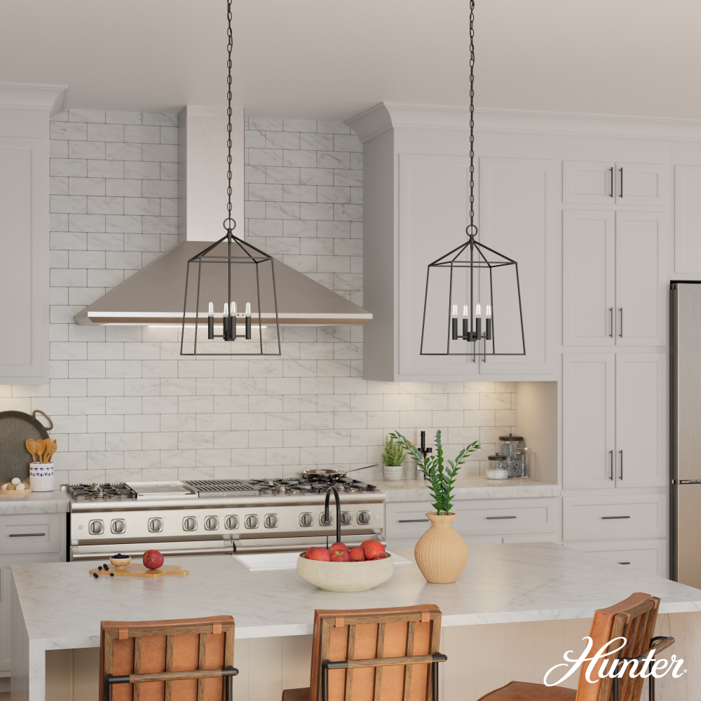 Hunter 13095 - Hunter Fair Oaks Matte Black 4 Light Medium Pendant Ceiling Light Fixture