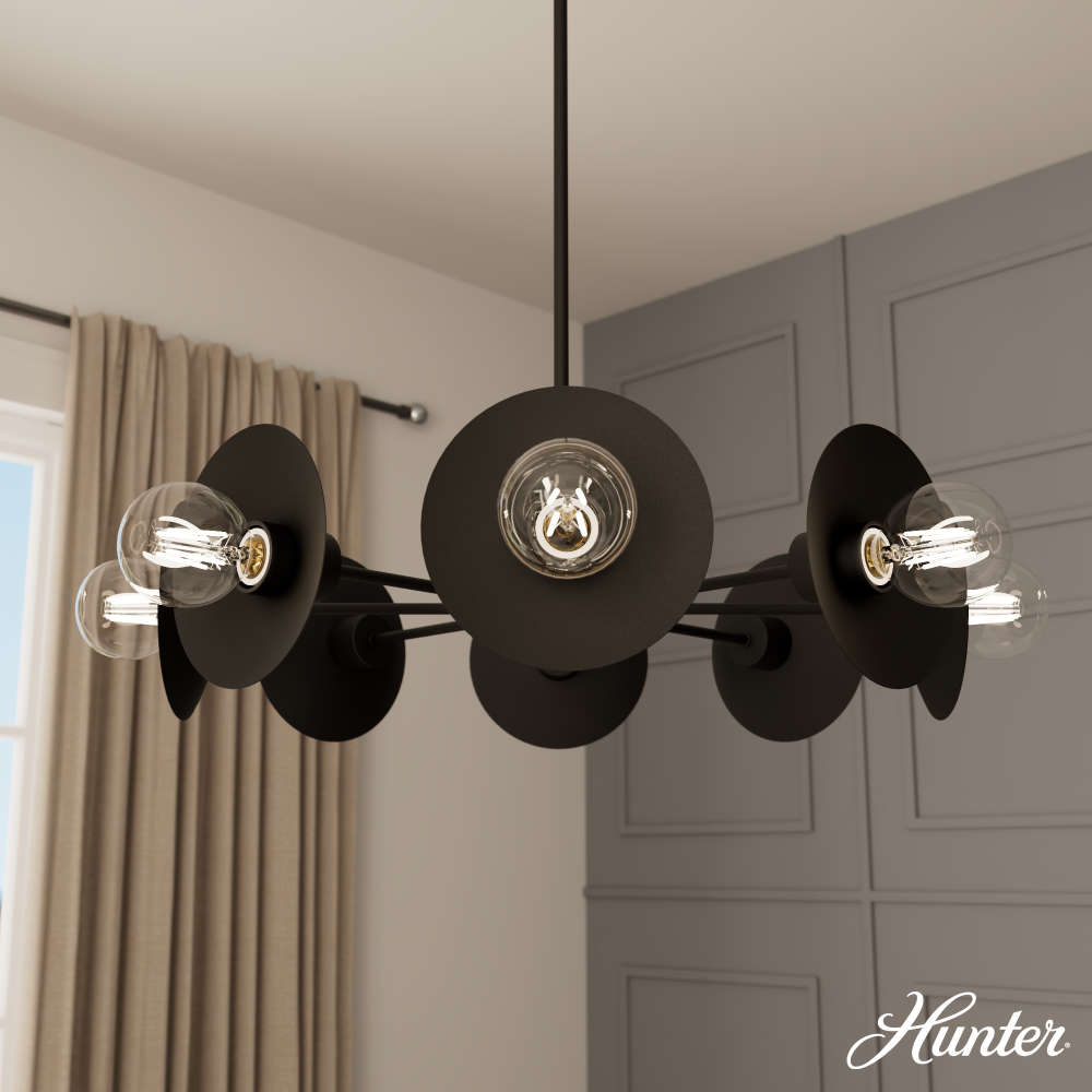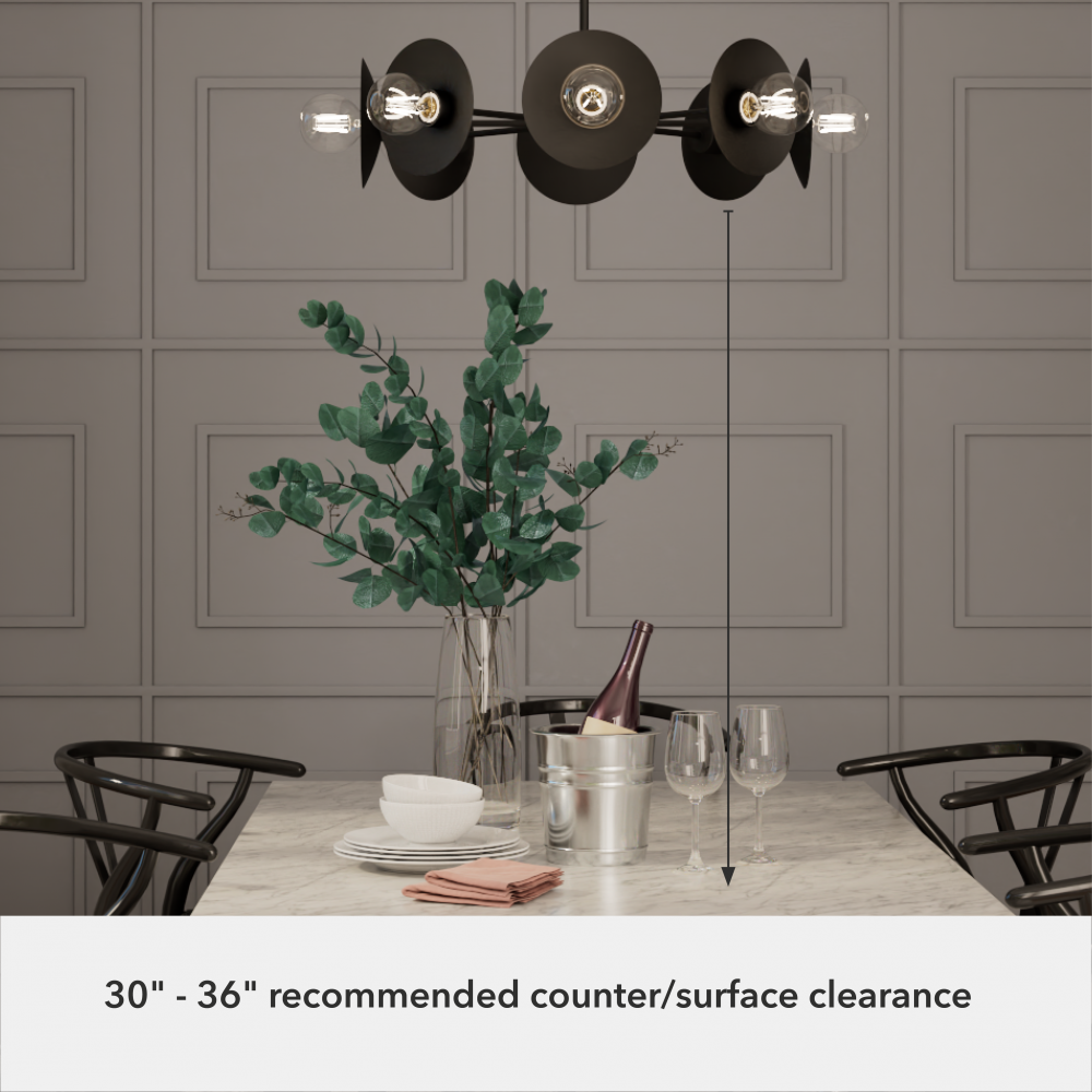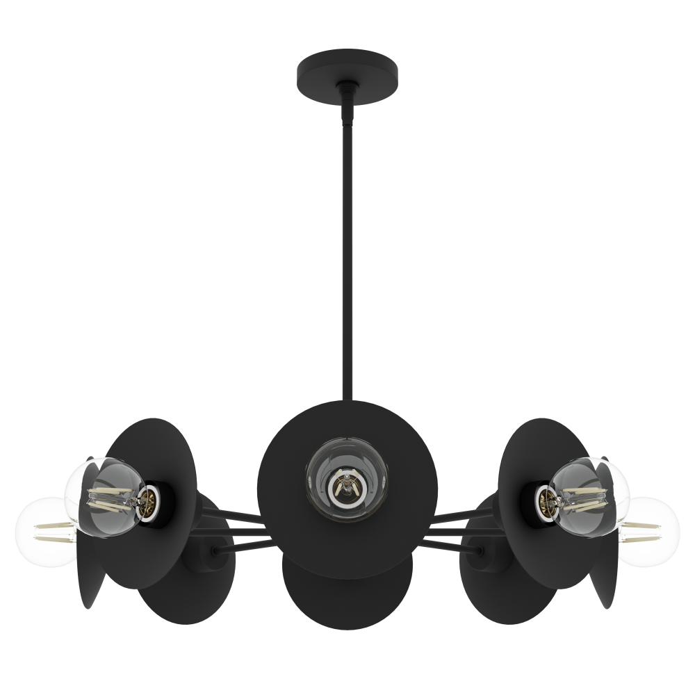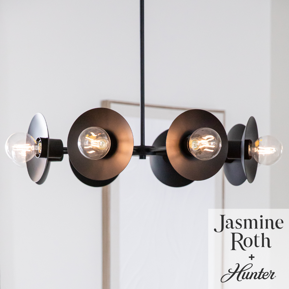 Modernist and contemporary design converge in the striking Fernando Chandelier, presenting a unique interpretation of the iconic Starburst/Sputnik aesthetic. The inventive exposed bulb arrangement, paired with floating black shades, renders this avant-garde fixture an instant conversation starter at any social gathering. Designed in collaboration with Jasmine Roth to be the centerpiece, the Fernando Chandelier readies your space to leave a memorable impression. Harmonize and enhance your decor by mixing and matching with other fixtures from the Jasmine Roth Collection or our sophisticated ceiling fan designs.