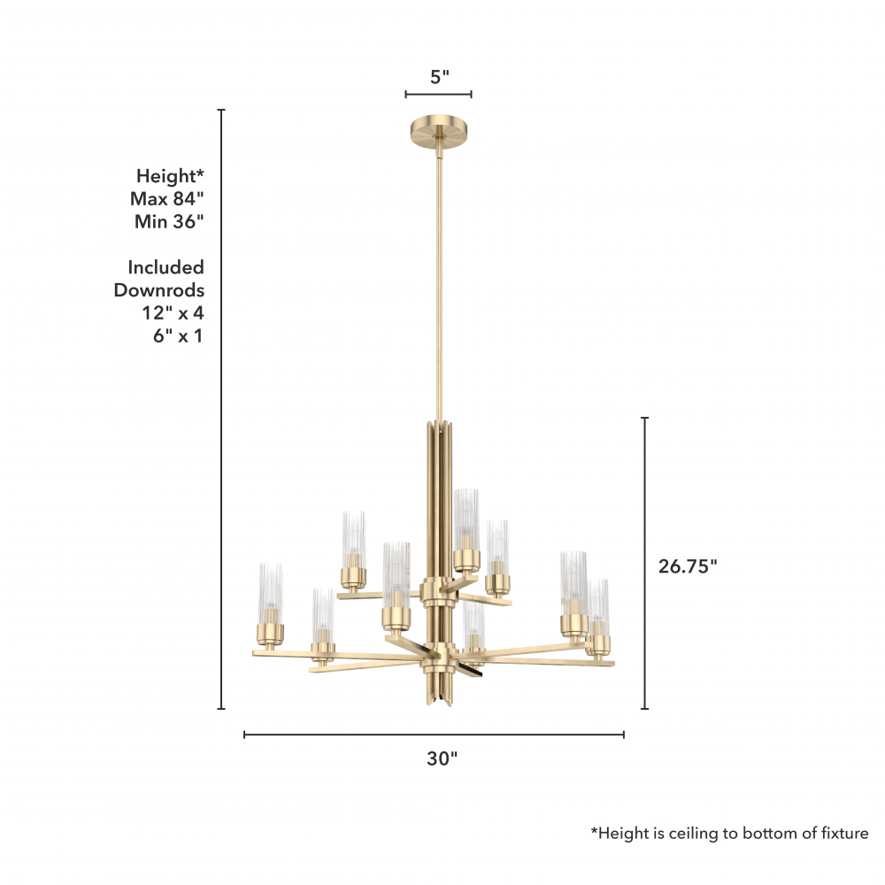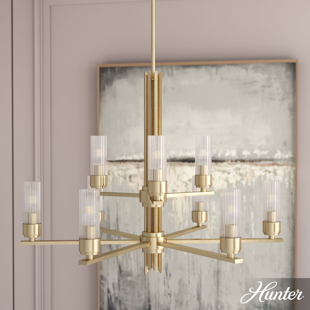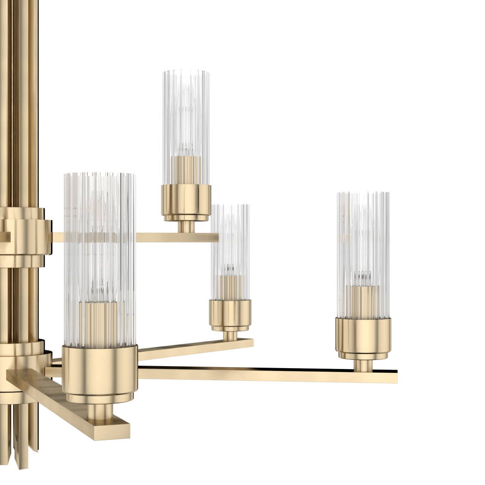 Create a sensation with the flick of a switch. The Gatz chandelier is the epitome of elegance and glamour. The multiple fluted glass shades and metal finish are lovely by day but stunning at night. You can add sparkle throughout your space with other lights from the collection. Mix and match with other fixtures from this collection or from our ceiling fan designs.
