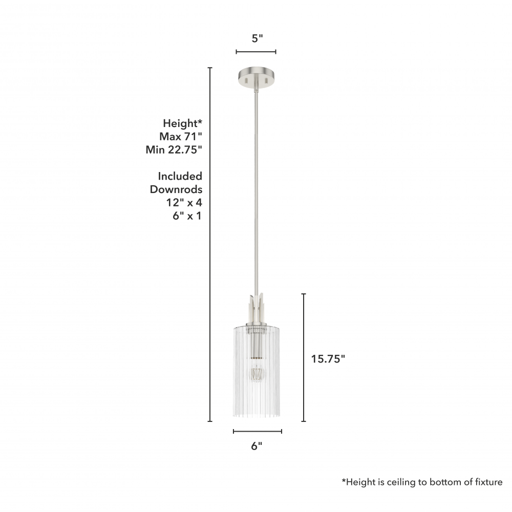 CUSTOMIZABLE HANGING OPTIONS: With the minimum required downrod, the hanging length is 22.75 inches. When using all of the included downrod, the maximum hanging length is 70.75 inches.