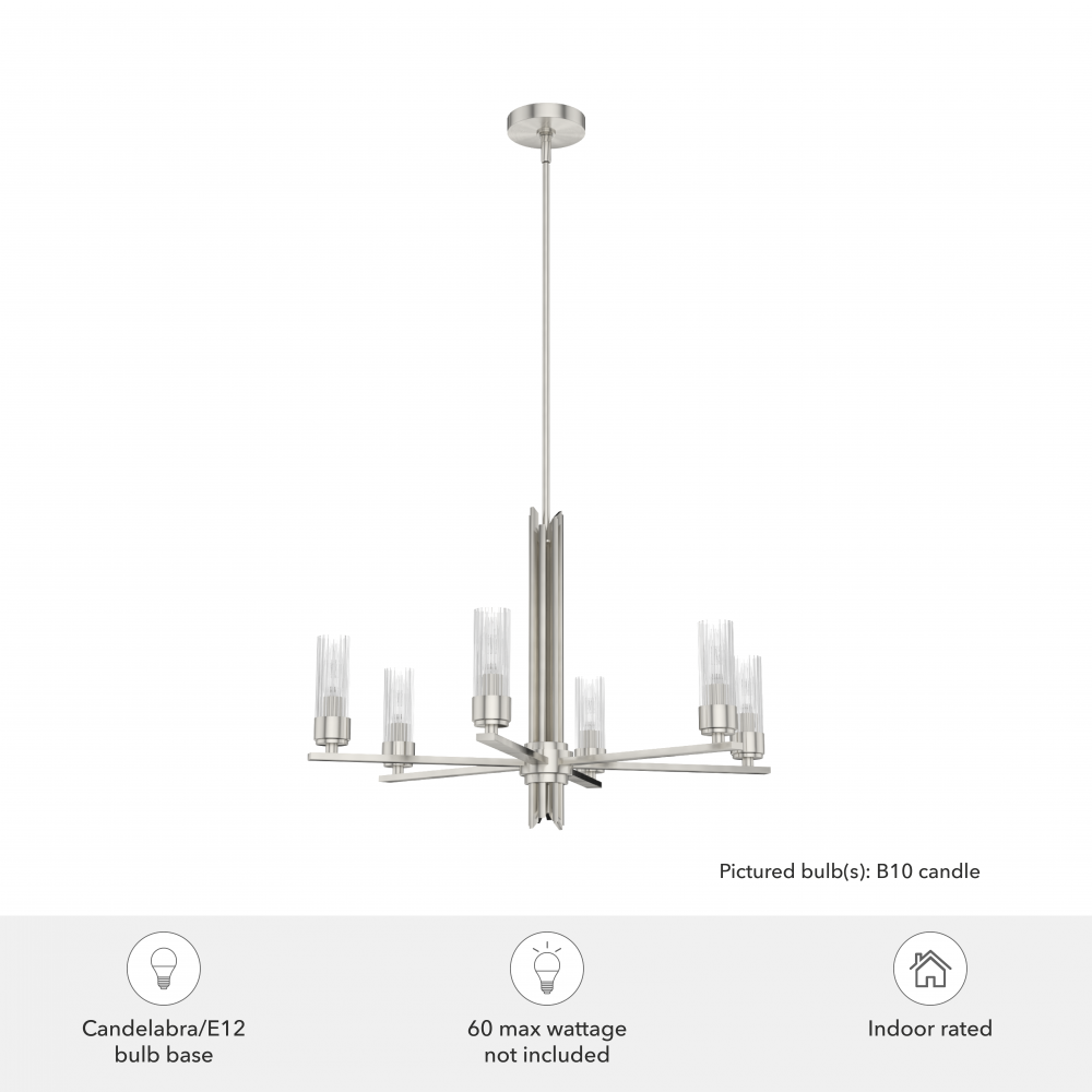 The Gatz 6 light chandelier adds instant glam to your living room. With fluted glass and a beautiful metal finish, your living room will leave your space alight with the chic style you are known for.