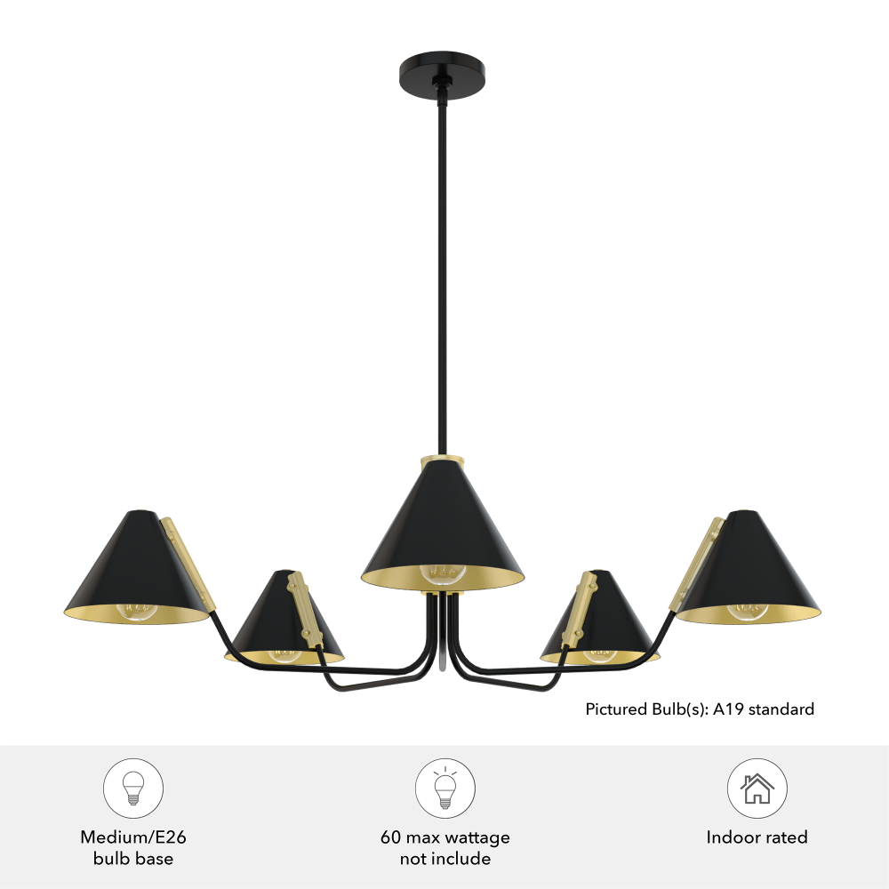 The Grove Isle transforms your simple spaces into shining showcases. The pop of metallic finish in the open light shades adds the perfect amount of luster that complements the classic finishes. This round chandelier is an updated take on the retro pharmacy head light fixture, utilizing clean lines and geometric forms for a look that’s modern and playful.