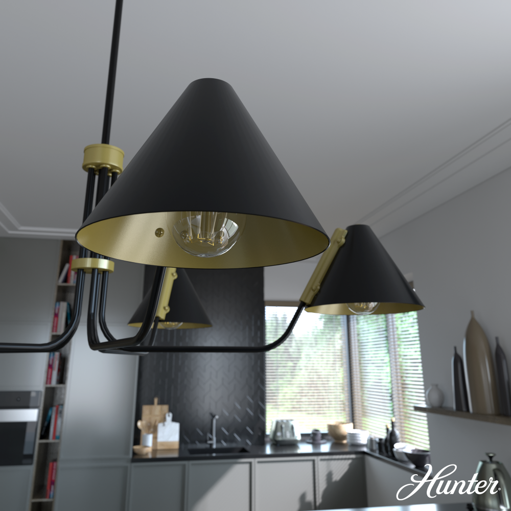 The Grove Isle transforms your simple spaces into shining showcases. The pop of metallic finish in the open light shades adds the perfect amount of luster that complements the classic finishes. This round chandelier is an updated take on the retro pharmacy headlight fixture, utilizing clean lines and geometric forms for a look that’s modern and playful. Mix and match with fans from our ceiling fan collections to fully finish your space.