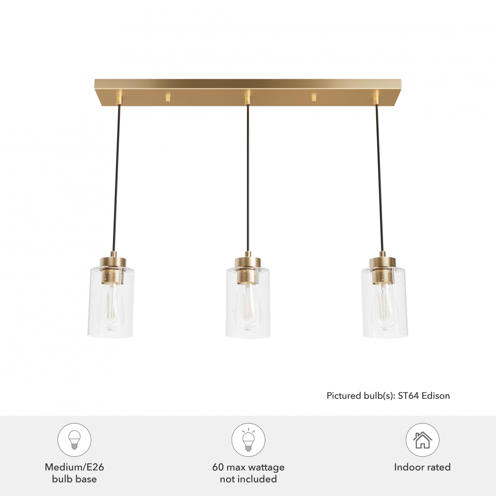 The Hartland collections always satisfy your taste for understated design, and the Hartland 3-Light Cluster is no exception. With clear-seeded glass pendants and your choice of metallic finishes, this light shines beautifully, creating a unique glow in your space. Over your kitchen island or in an entryway, this light will enhance your style! Check out other lights from the collection or the Hartland fan to create a relaxed and welcoming atmosphere.