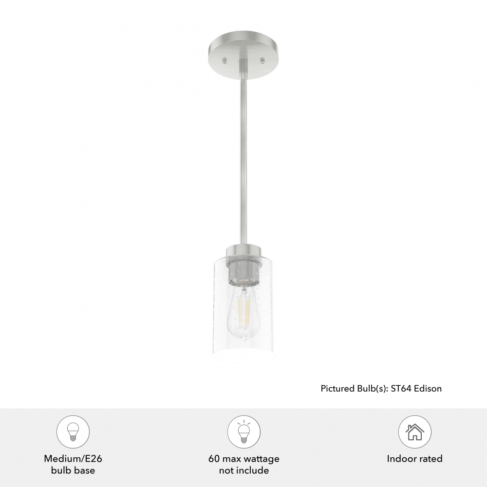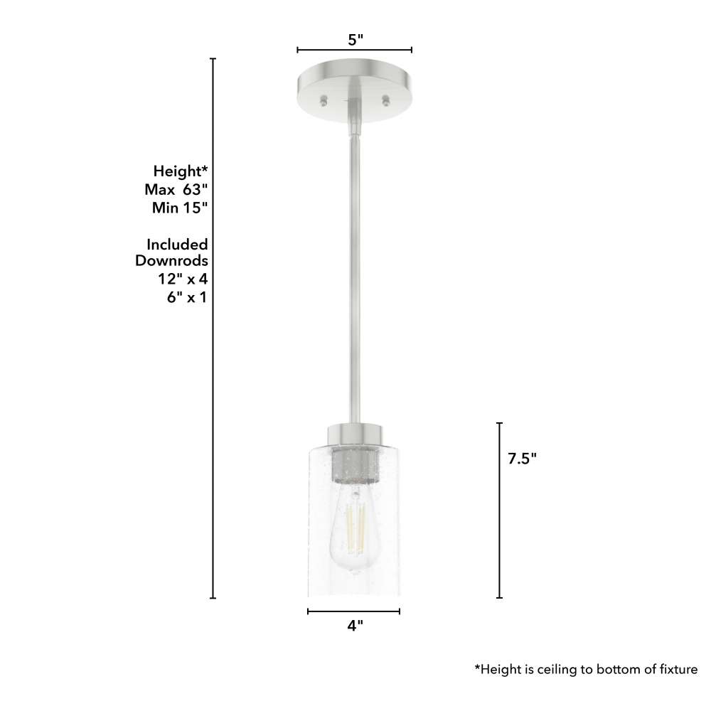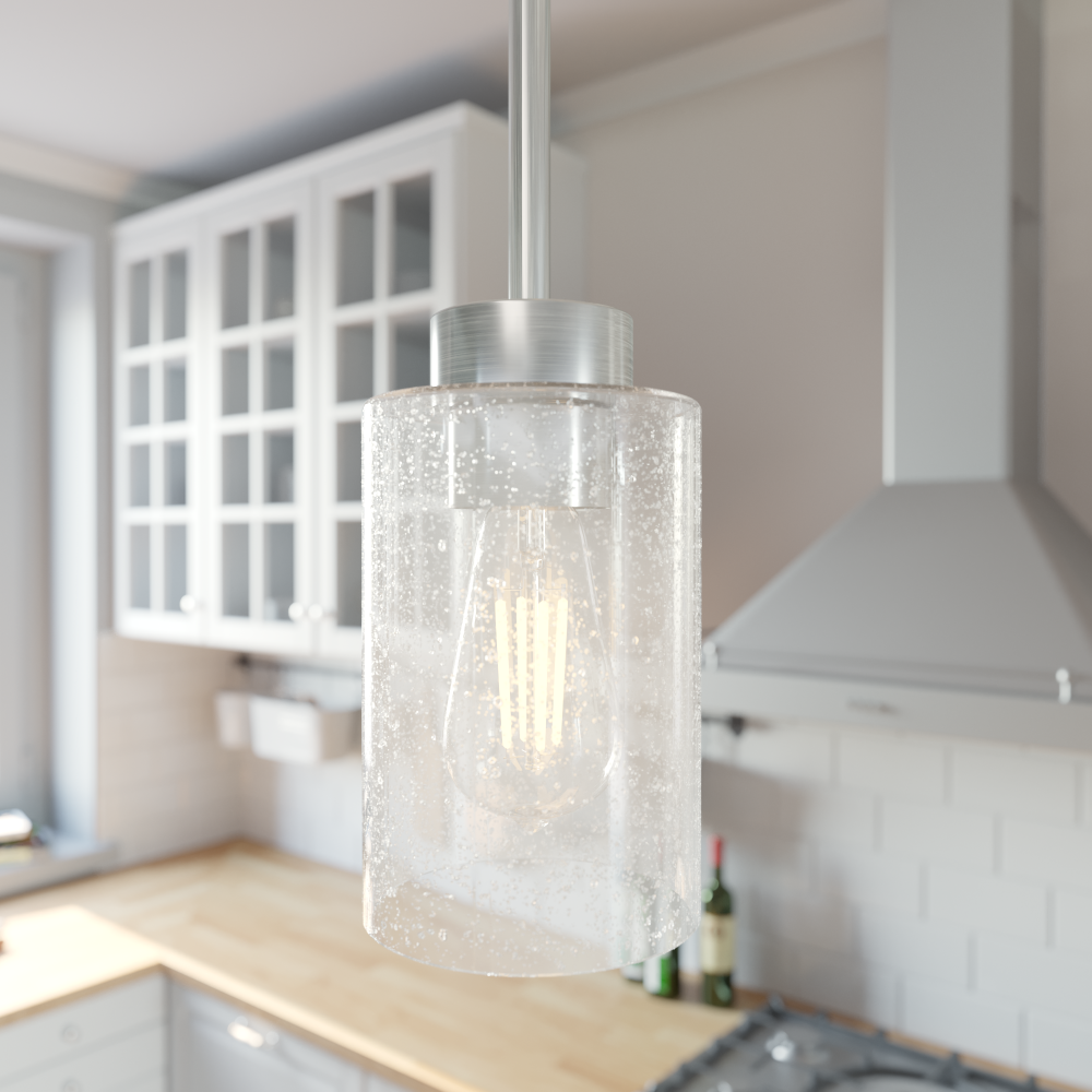 For such a small light fixture, the Hartland mini pendant’s seeded glass makes a shining impact. No matter the bulbs you choose, the clear seeded glass catches your eye as it sparkles from the rays of light. Combine the Hartland mini pendant light with other members of its collection for a well-rounded, stunning look.