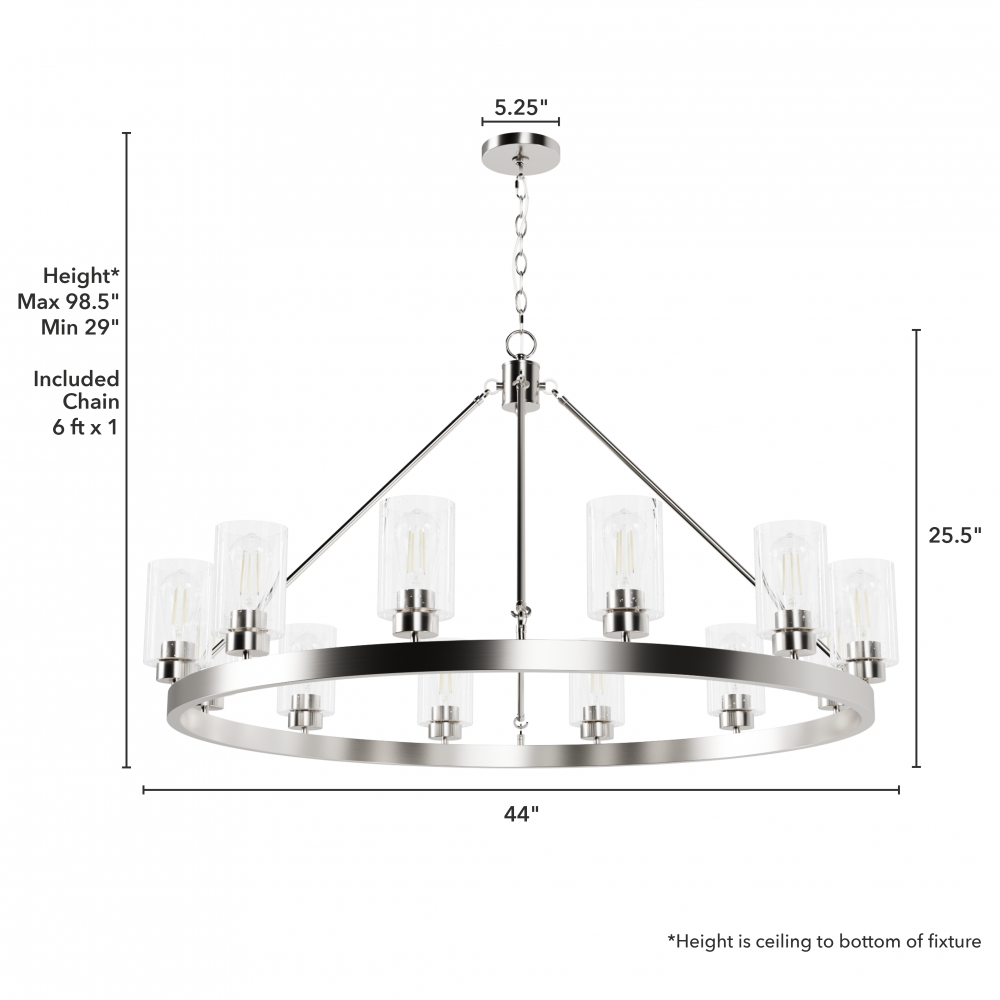 CUSTOMIZABLE HANGING OPTIONS: With the minimum required chain, the hanging length is inches. When using all of the included chain, the maximum hanging length is inches.