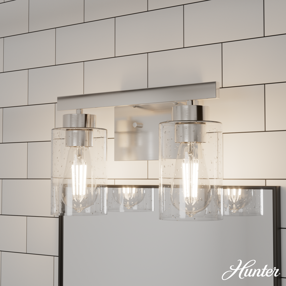 The amazing design of the Hartland vanity brightens your space and enhances your style. A mix of rustic and modern this design is a perfect fit in any space. Our assortment of finishes allows you to find the perfect light for your style. You can create a cohesive look throughout your home with other lights and fans from the Hartland collection.