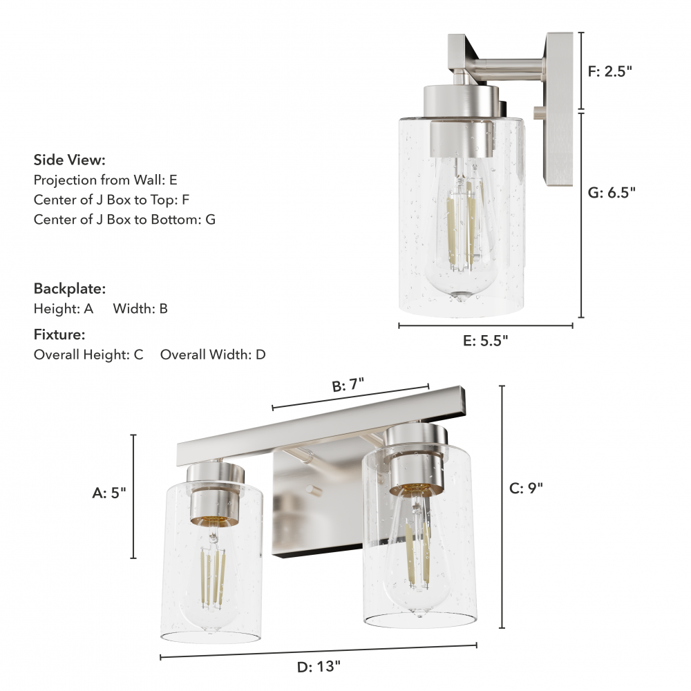 BULB RECOMMENDATION: Maximum W per light bulb or equivalent LED bulb. Bulbs not included.